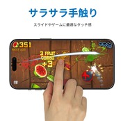 【サラサラ手触り】このアンチグレアガラスの表面を顕微鏡で見ると、スクラブ保護フィルムはボコボコと凹凸が見えます。この凹凸は人間の指では段差として感じることはなく、触れる面積が減るため一般的な強化ガラスと比べるとサラサラとした使用感になるのです。表面が「サラサラ」としているので、快適にゲームやフリック操作することが可能です。