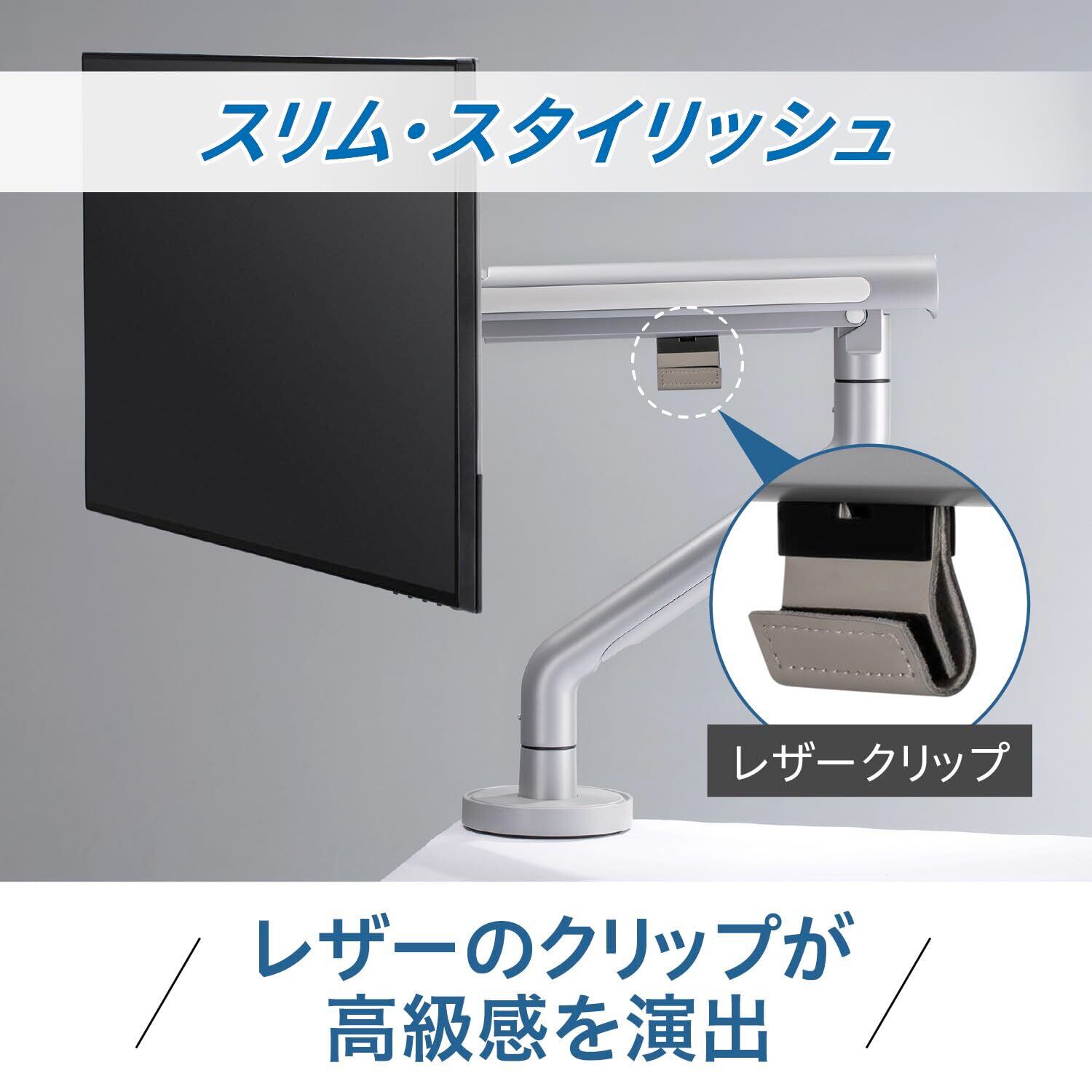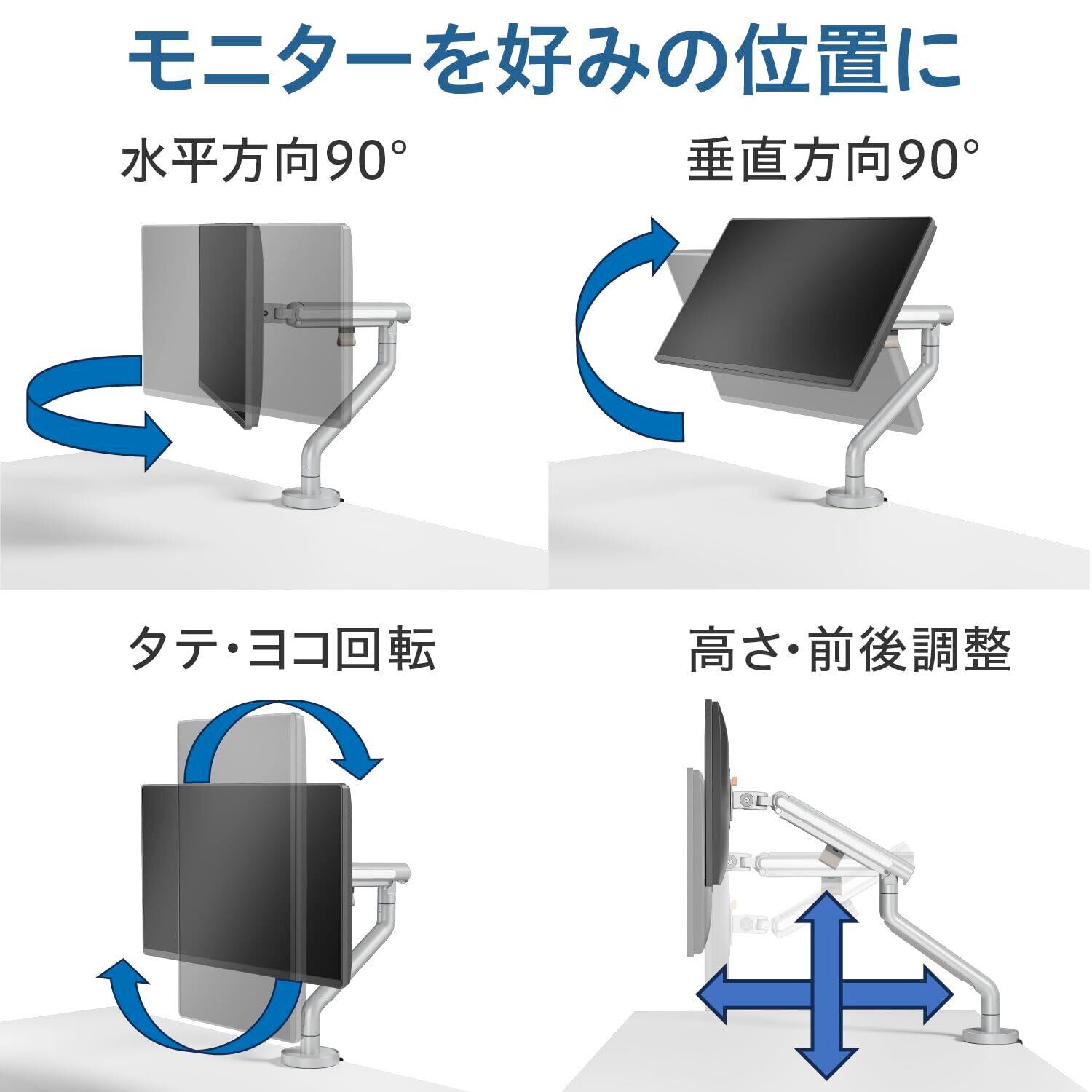 画面を上下左右、前後に自在に動く、メカニカルスプリング式液晶ディスプレイアーム。17~32インチ対応、耐荷重3~9kg対応。画面の前後移動ができる4軸タイプ。
