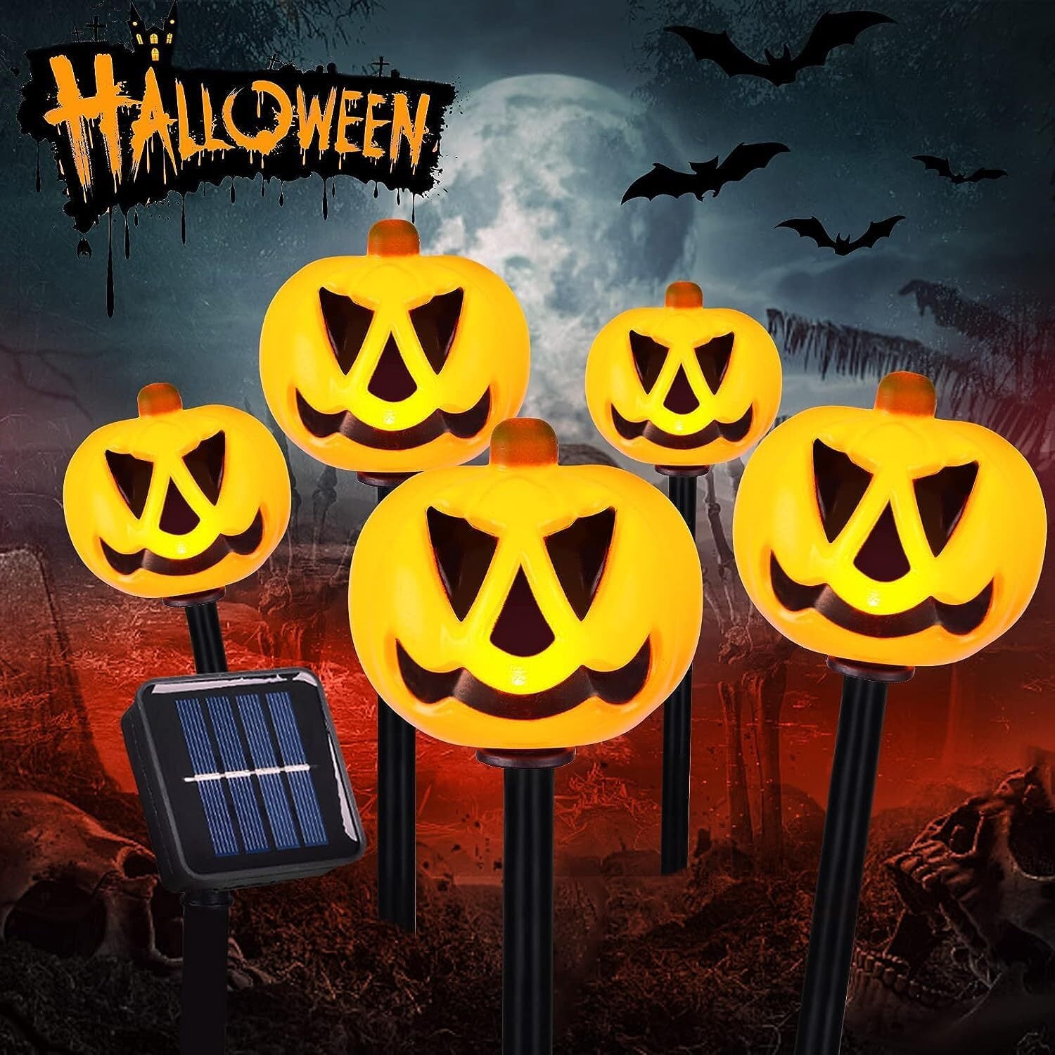 ガーデンライト ハロウィーン ソーラーライト ハロウィン 飾り ライト カボチャ 装飾 5個セット 太陽光発電 自動点灯 消灯 防水 室内 屋外 イベント 雰囲気作り ウォームホワイト (カボチャ)