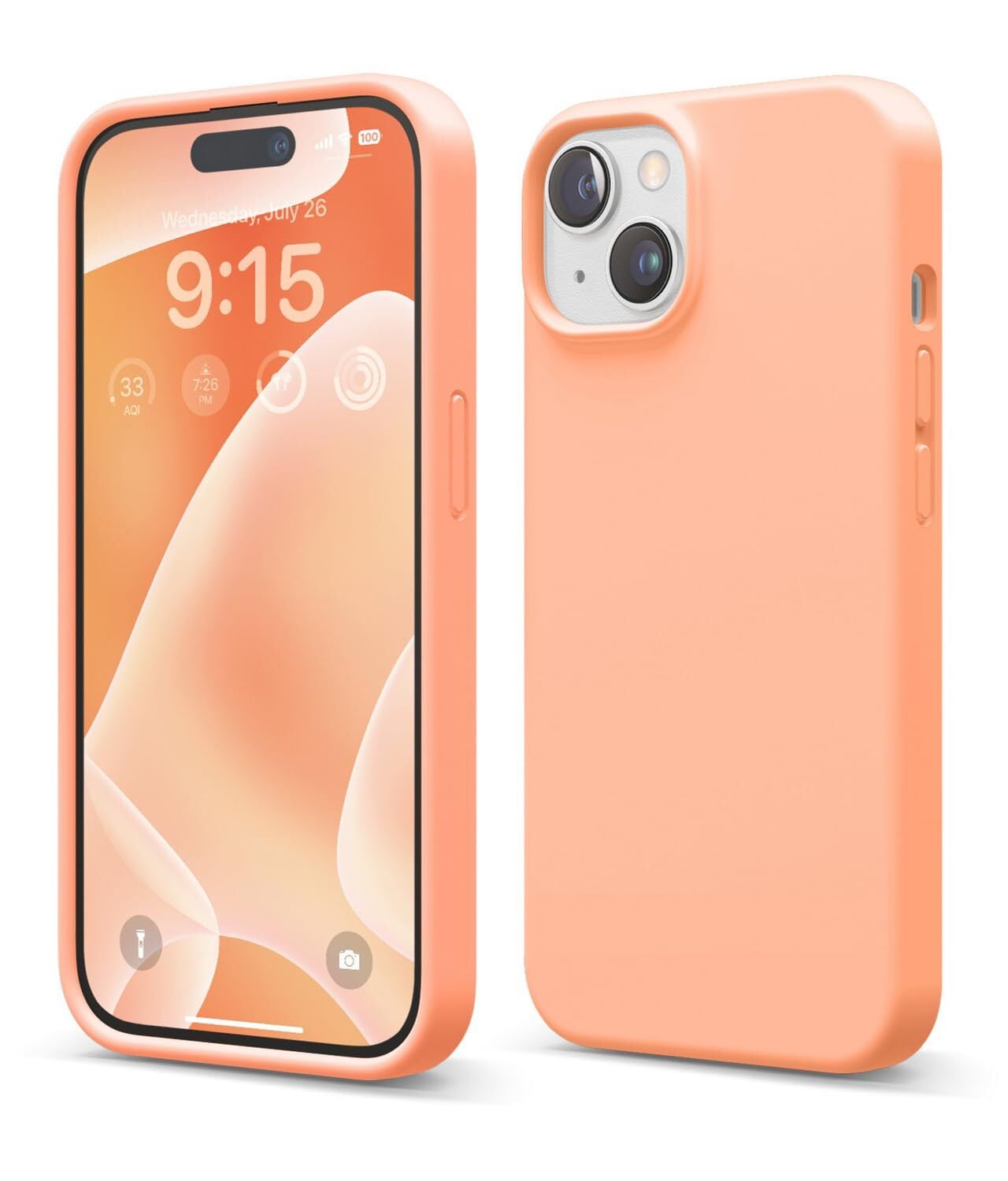 【elago】 iPhone15 対応 ケース 耐衝撃 傷 指紋 防止 シリコン スマホケース スリム 衝撃吸収 サラサラ 手触り シリコンケース [ Apple iPhone 15 アイフォン15 対応 携帯ケース ] iPhone15ケース SILICONE CASE サーモン