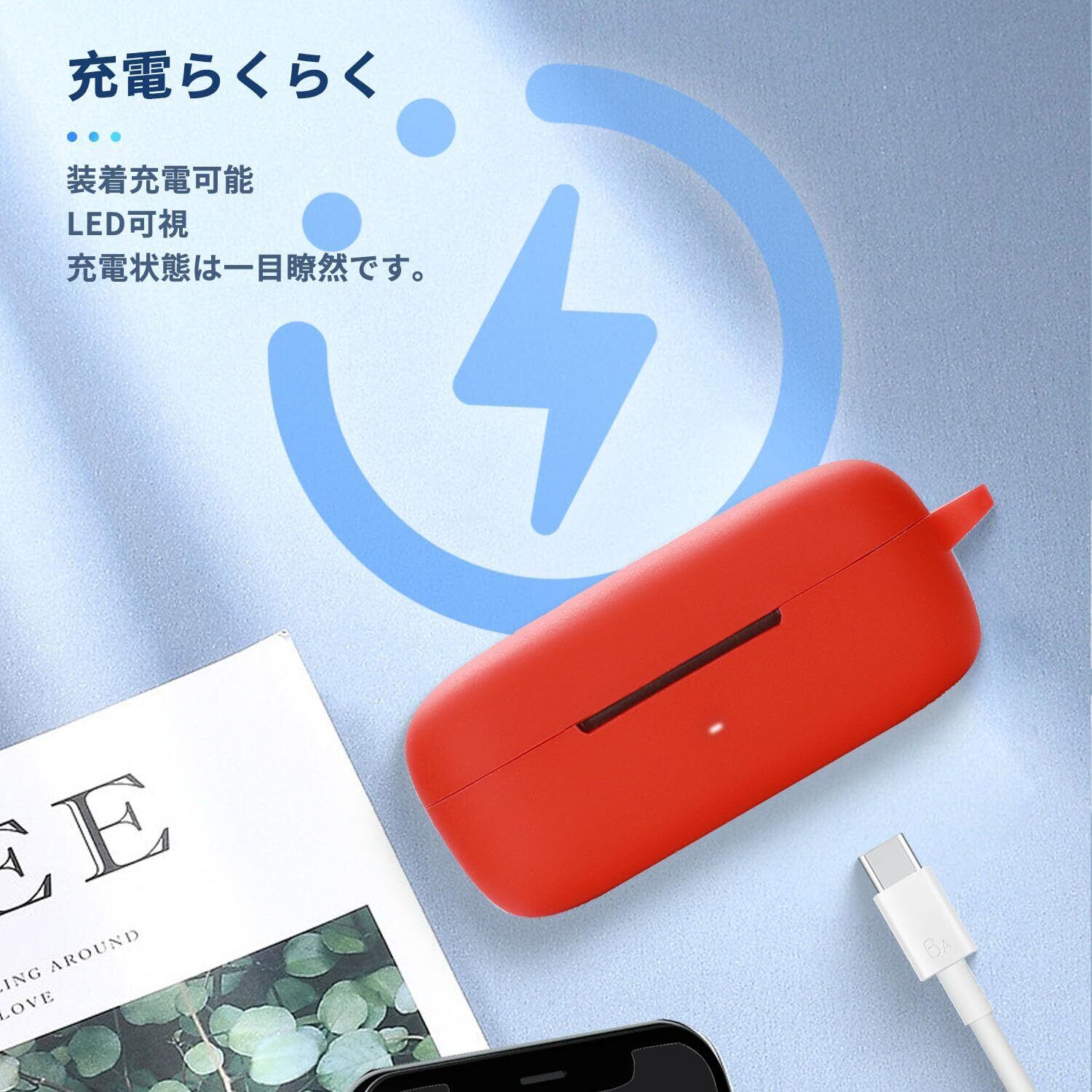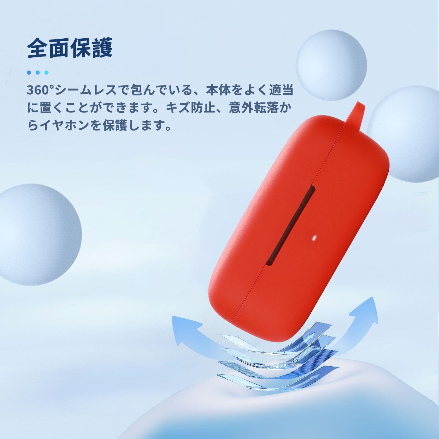 EarFun Free Pro 3 用 ケース カバー 【NOUKAJU】 ワイヤレス イヤーホン シリコン 保護ケース (カラビナ付き+ストラップ付き ) 落下防止 キズ防止 耐衝撃 装着充電可能 防水 防塵 (レッド)