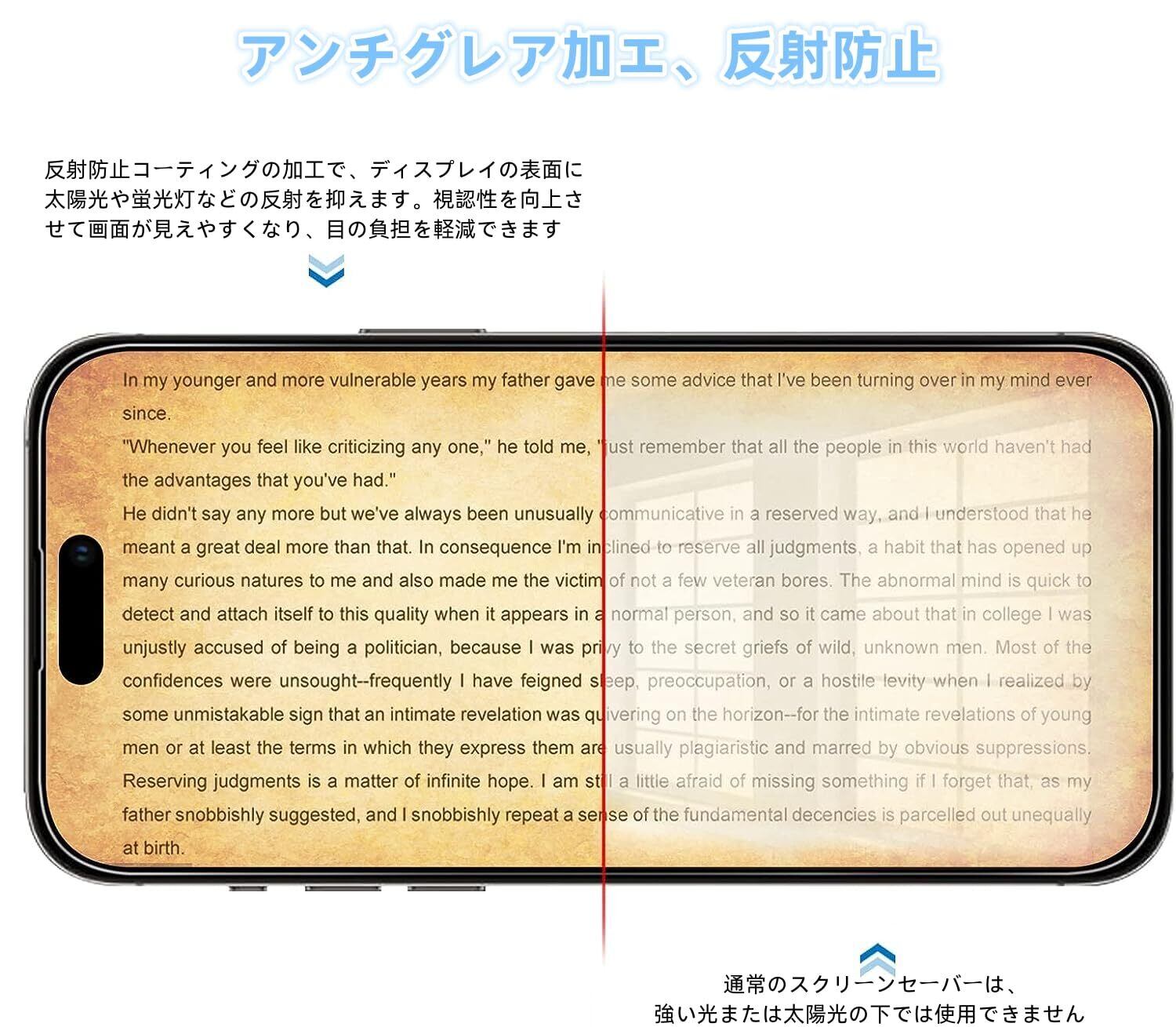 【アンチグレア・覗き見防止】iPhone 15 用ガラスフィルム【2枚】 硬度9H 日本製強化ガラス 覗き見防止 液晶保護フィルム サラサラ感 全面保護 反射防止 飛散防止 キズ防止 衝撃吸収 撥油性 疎水性 アイフォン15 ゲームフィルム