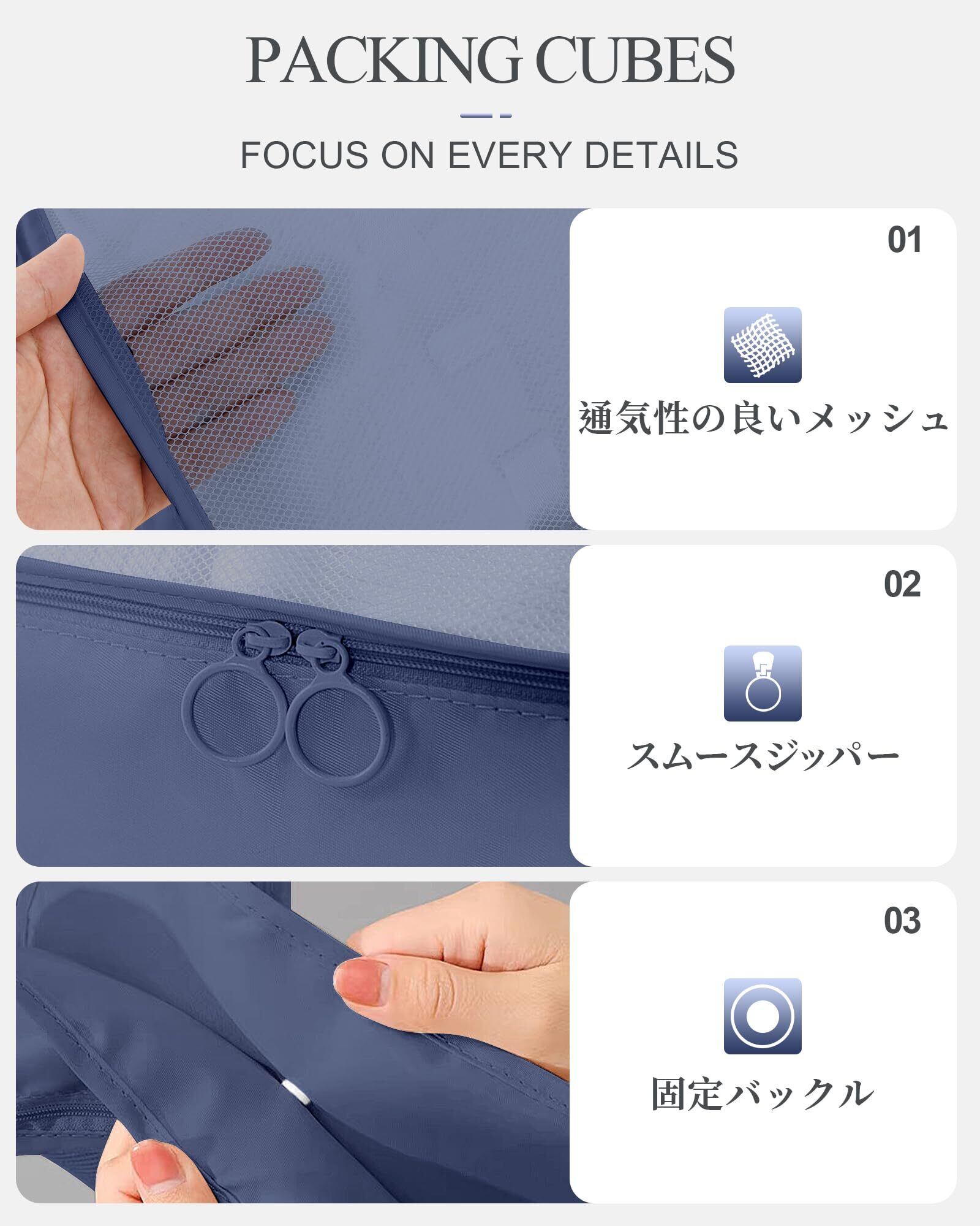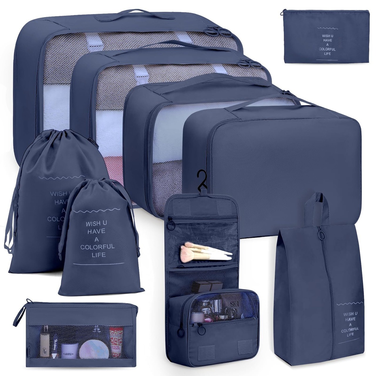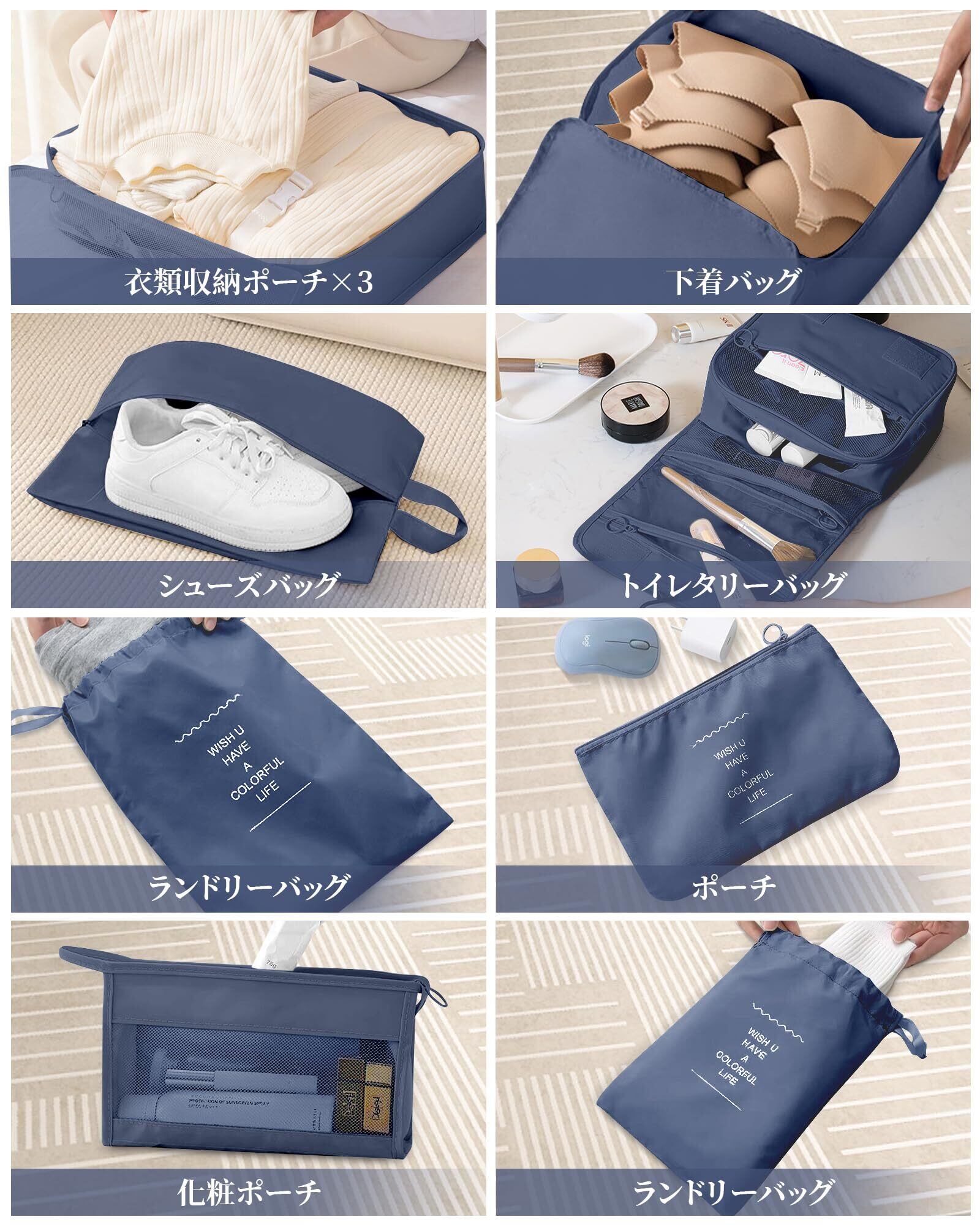 TRMF トラベルポーチ 10点セット 旅行用ポーチ 目に見えるメッシュデザイン 撥水加工 衣類仕分け 旅行用 出張 衣類 整理 便利グッズ (紺)