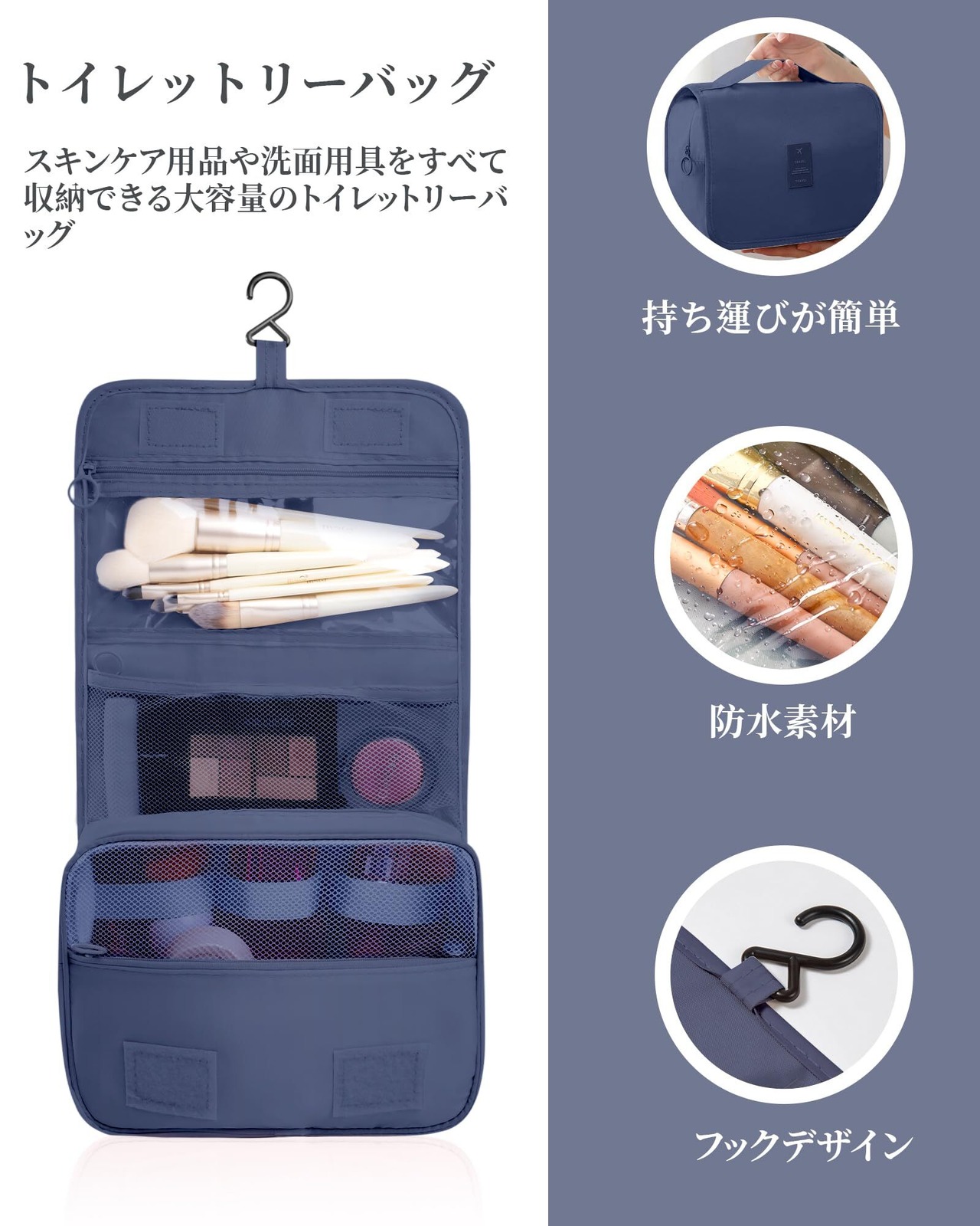 【トラベルポーチ 10セット】衣類収納ポーチ×4、掛け式トイレタリーバッグ×1、シューズバッグ×1、巾着袋×2、メッシュ化粧ポーチx1、ポーチx1。着ていない服衣類や汚れた衣類、洗面用具やシューズなども分けて衛生的に収納できます。スーツケースのなかもすっきりします