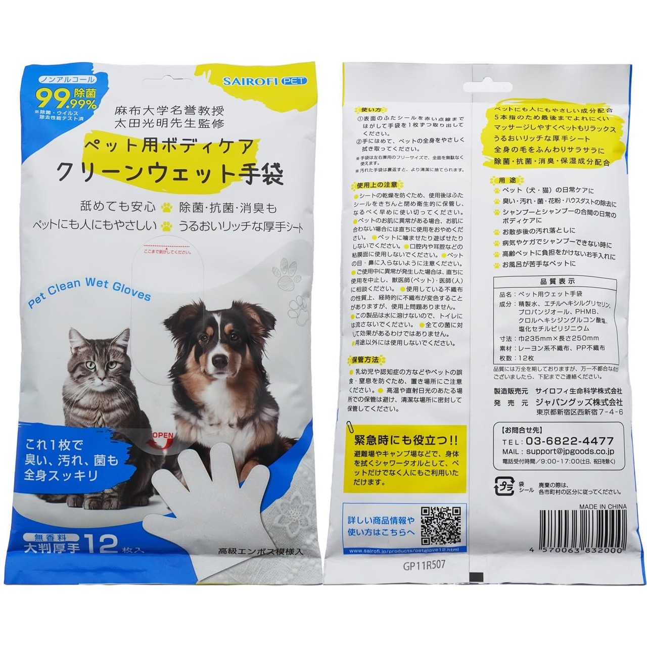【12枚×3袋】ペット用ボディケアクリーンウェット手袋) 麻布大学名誉教授太田光明先生監修