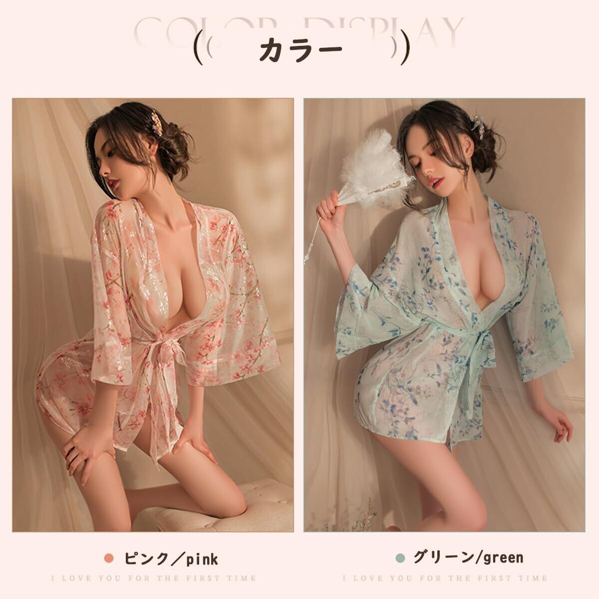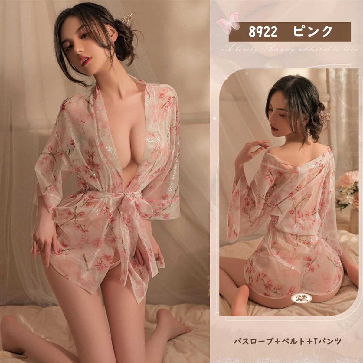 [Oceanmarina] 3点セット 浴衣 コスプレ セクシー 和服-8922 シースルー・チュール コスプレ 過激 エッチ な えろい ランジェリー コスチューム エロ下着 レディース 衣装 仮装 プレゼント バスローブ+ベルト+Tパンツ