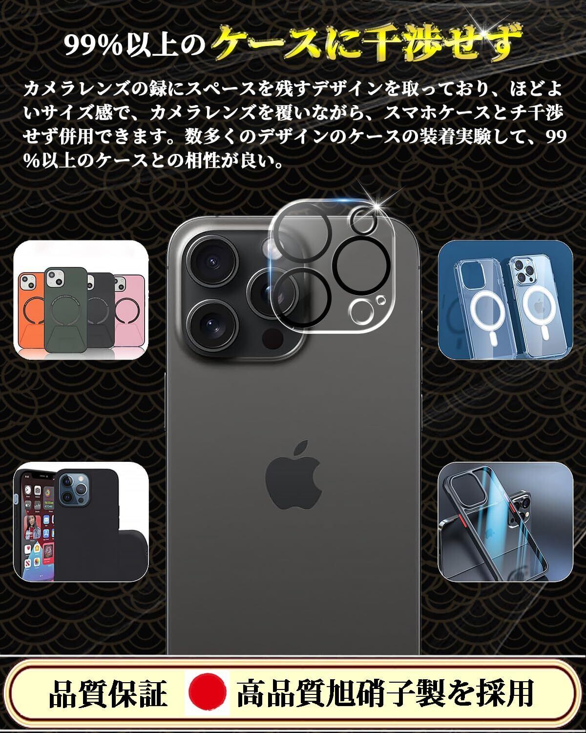 【99%以上のケースに干渉せず】カメラレンズの縁にスペースを残すデザインを取っており、ほどよいサイズ感で、カメラレンズを覆いながら、スマホケースと干渉せず併用できます。数多くのデザインのケースの装着実験して、99%以上のケースとの相性が良い。