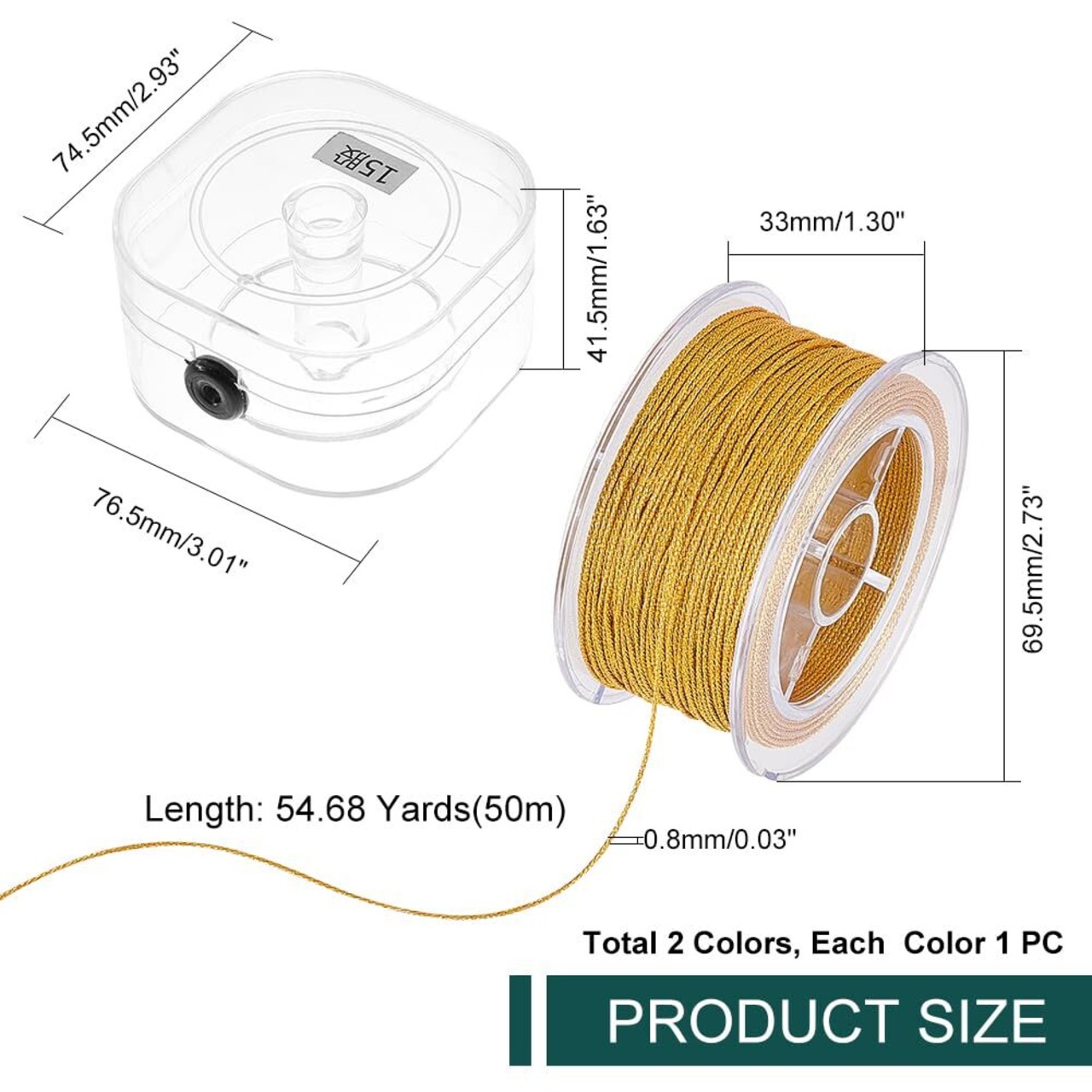 サイズ:直径0.8mm、約50m(54.68ヤード)/ロール