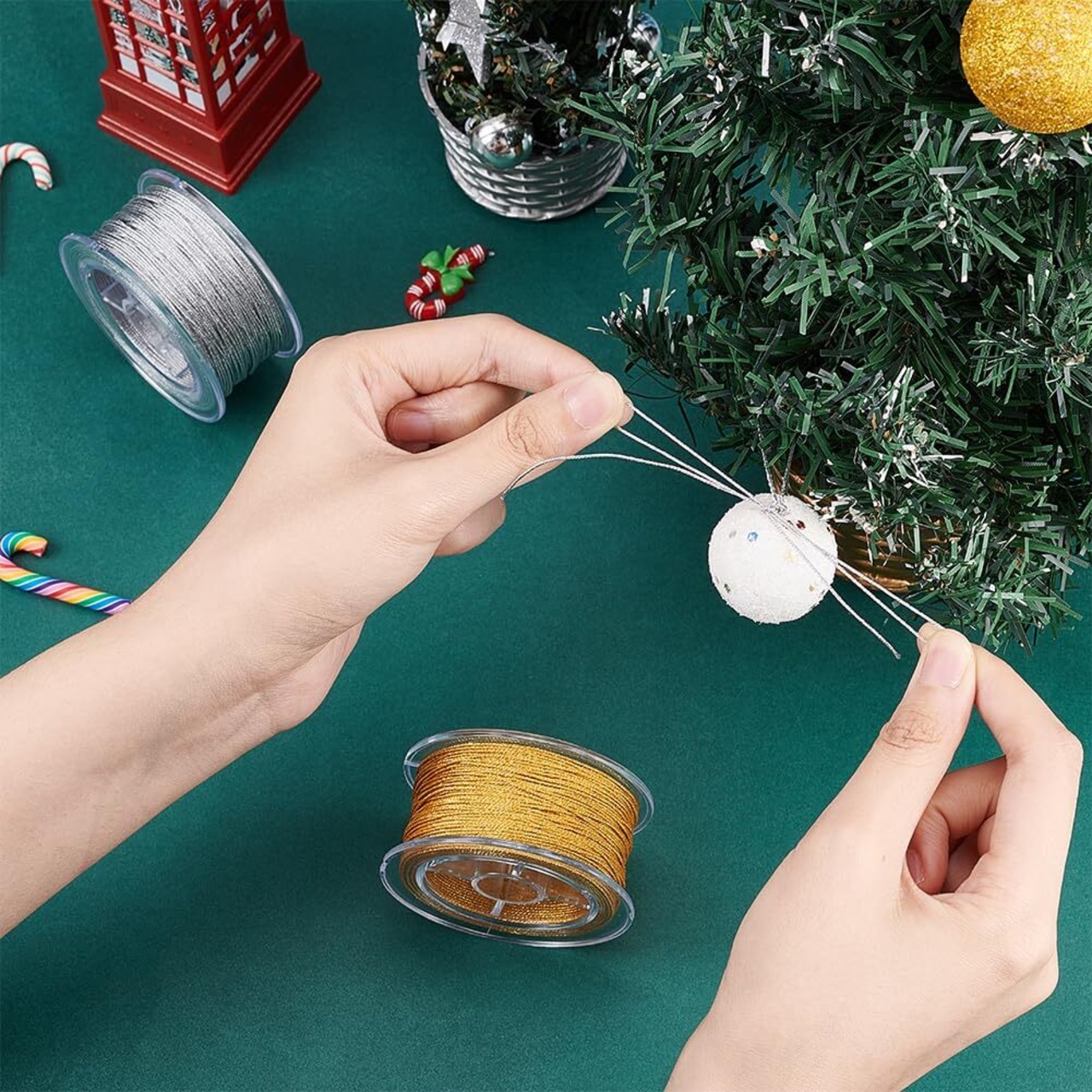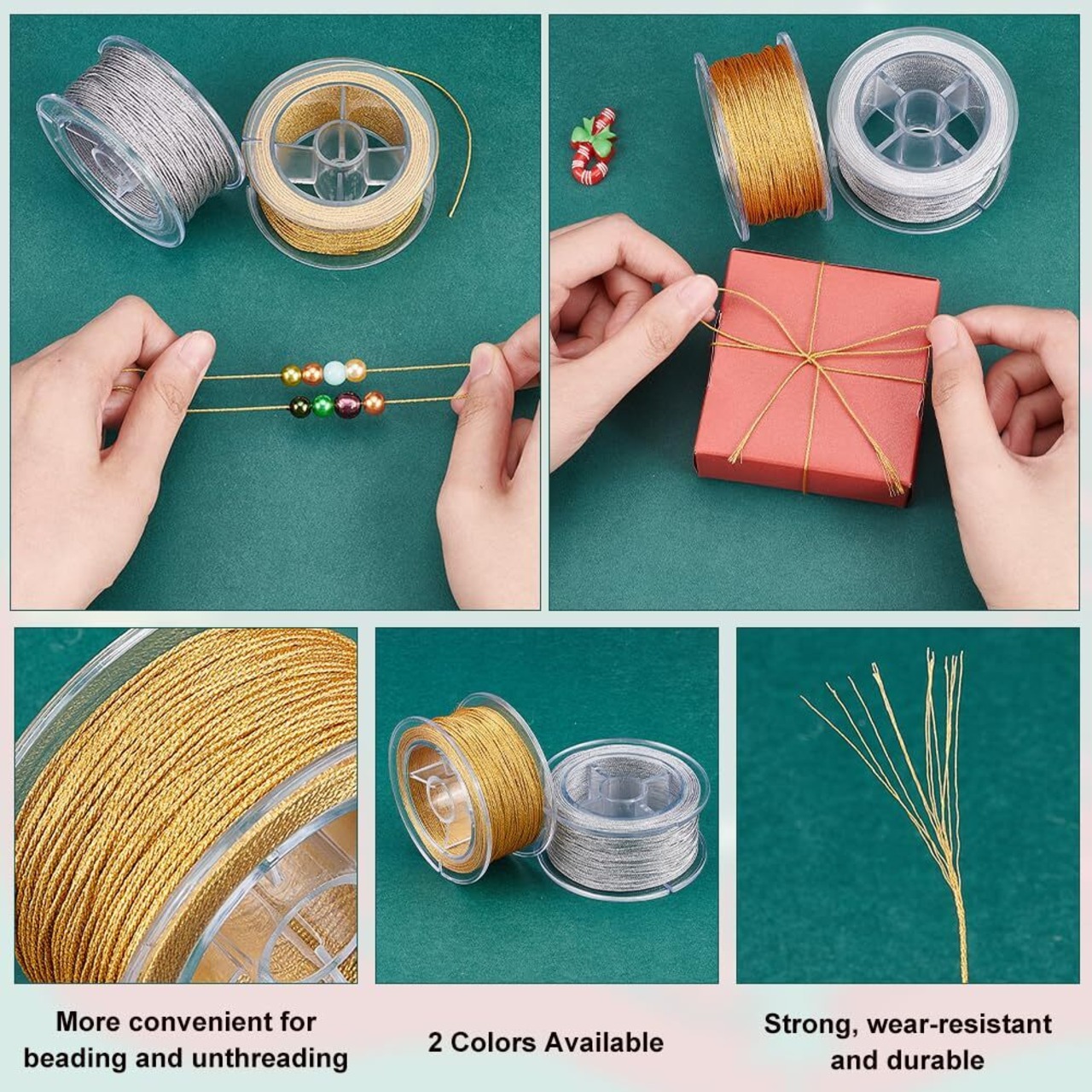用途:このメタリック糸は、ギフトラッピング、クリスマスオーナメント吊り下げ、ドレスアップ、装飾、クラフト、ビーズ、ジュエリー製作に適しています