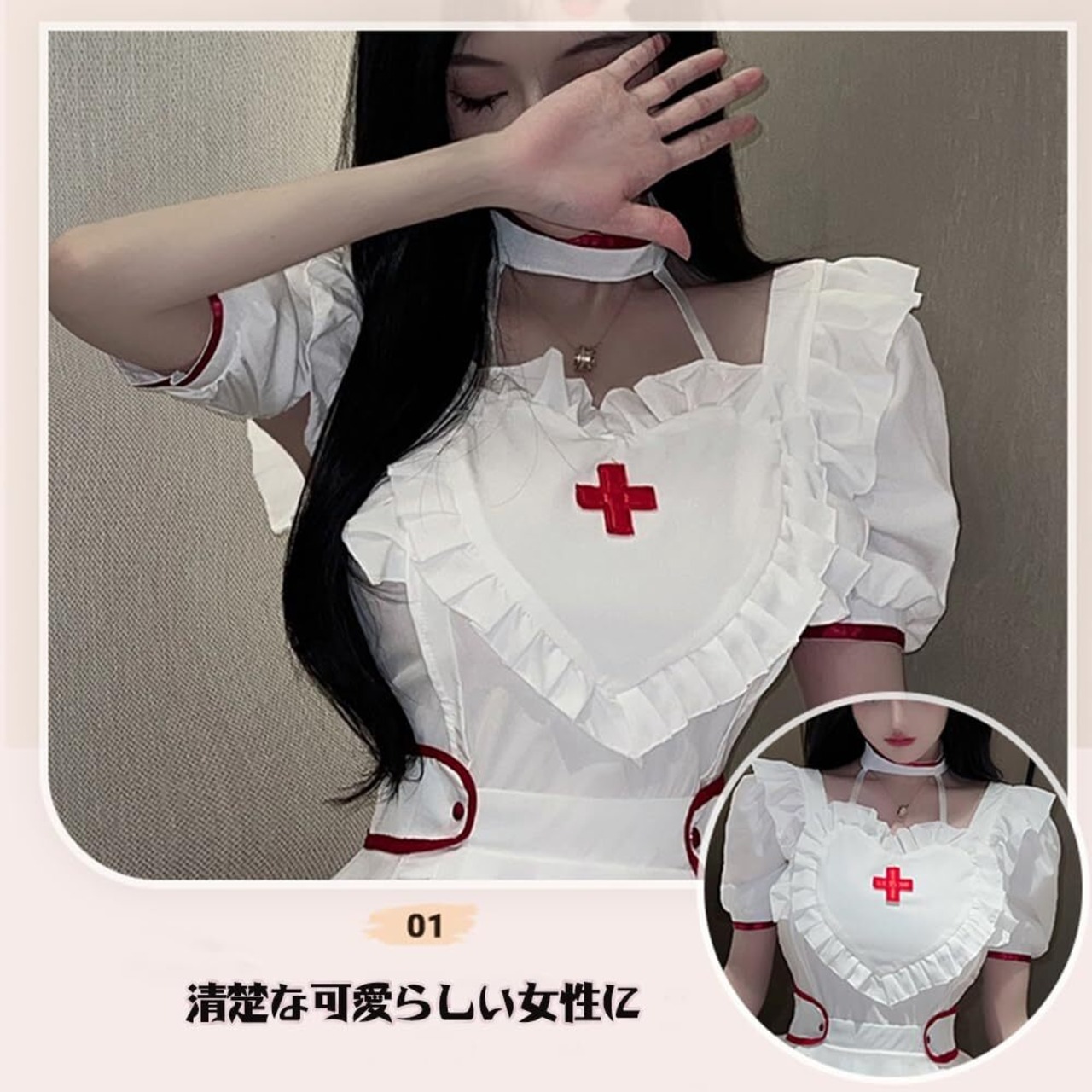 [SENMHS] ナース コスプレ セクシー エッチ な エロ ナース服 制服 ボンデージ 看護婦 nurse 情趣 調教 萌え ミニ丈 ランジェリー コスチューム レディース ハロウィン 仮装 衣装 撮影 ストッキング付き ホワイト