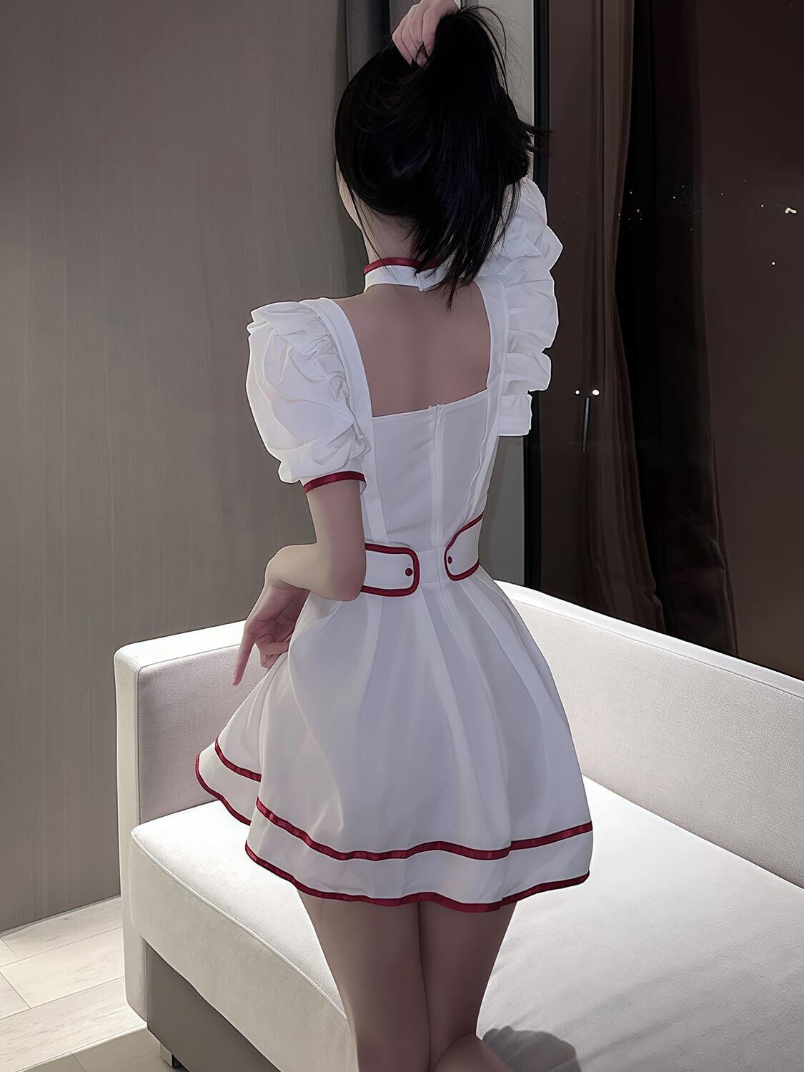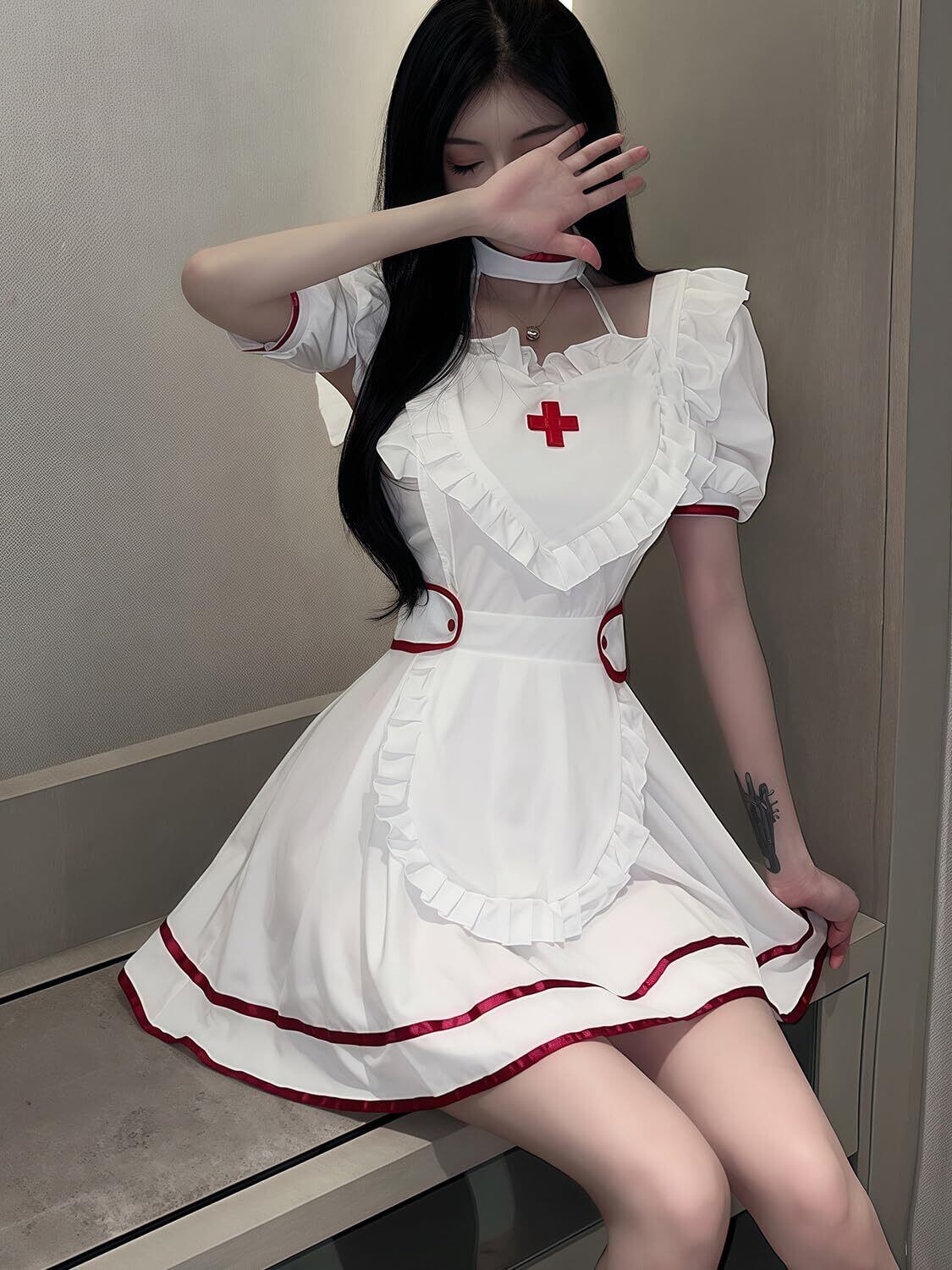 ヒップが見えちゃう短め丈のナース風セクシーコスプレ。過度な露出も少ないのでコスプレ初心者さんでも挑戦しやすいアイテムです