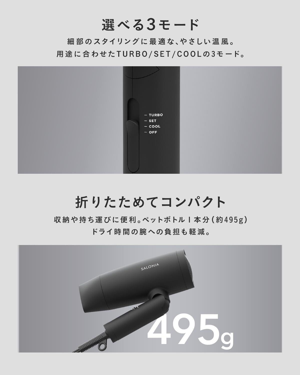 【スピーディーイオンドライヤー】折りたたみ式で、軽量なので持ち運びにも便利