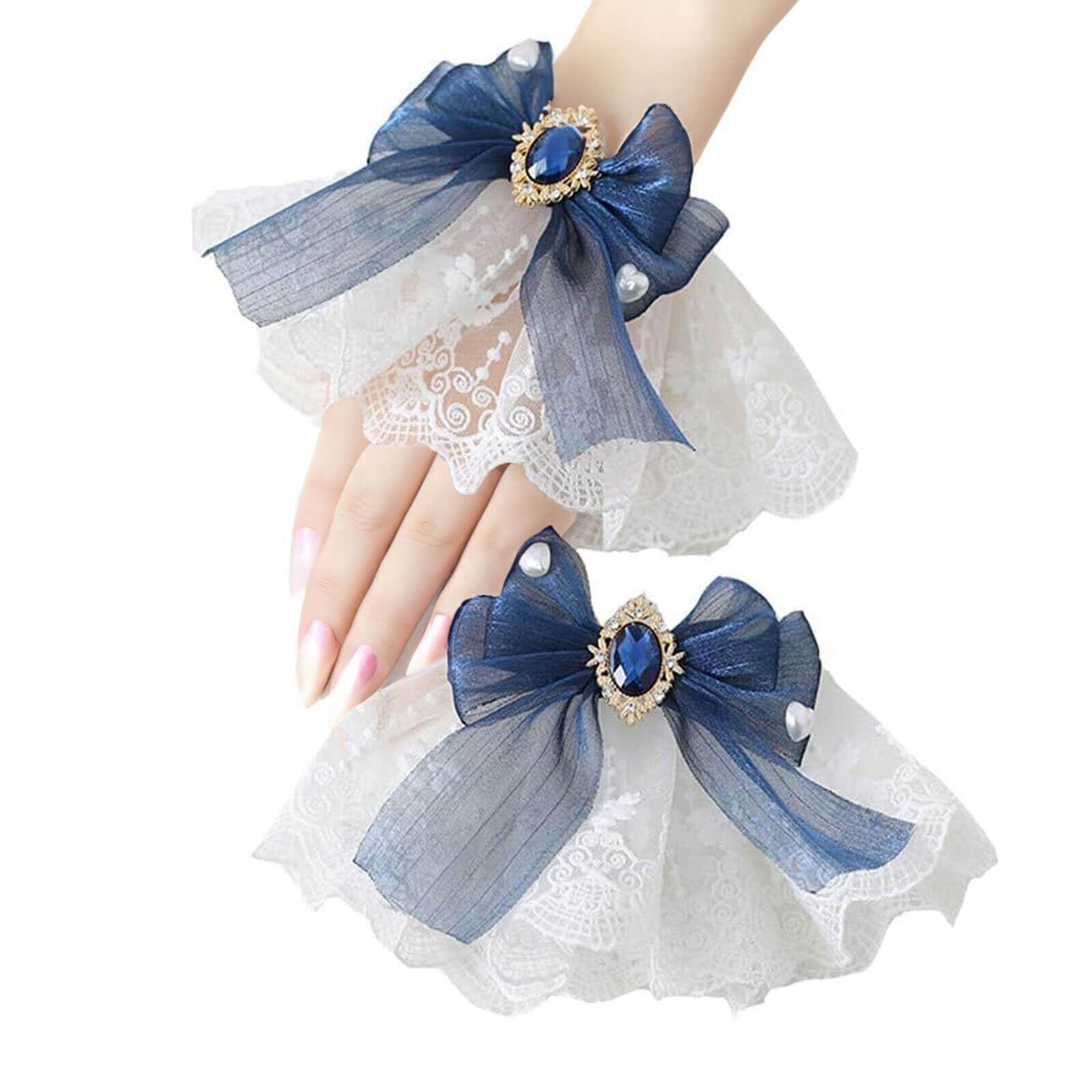 [fourfivesixはる] 付け袖 ロリータ つけ袖 レース リボン付き ゴスロリ 女の子 ガールズ 超可愛い 萌え系 腕飾り 超キュート ゴスロリ おしゃれ フリル オーガンジー お人形 甘ロリ 服アクセサリー