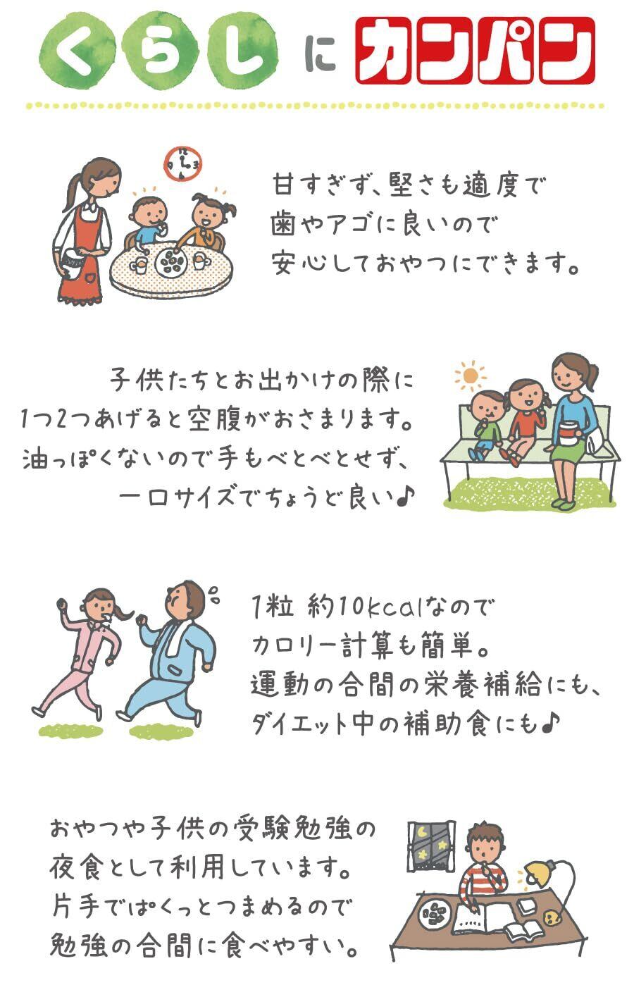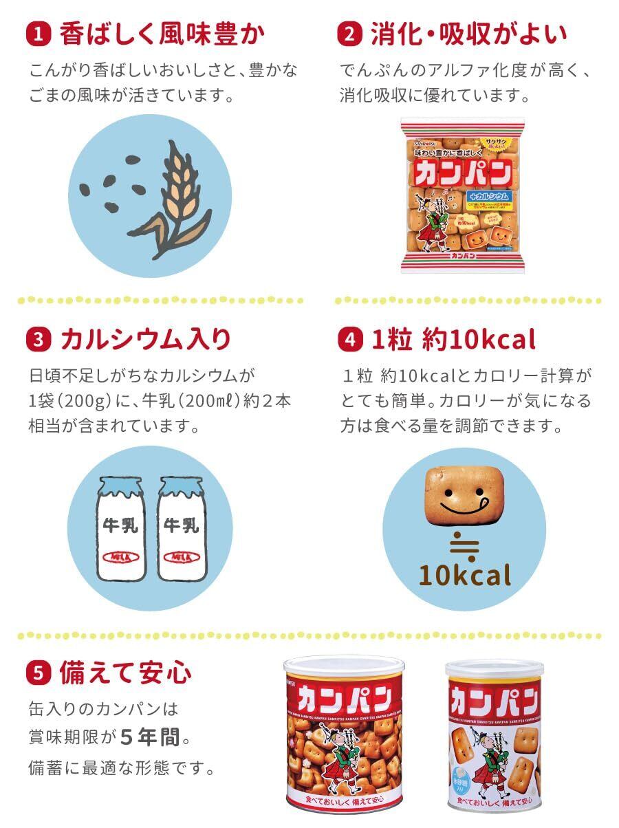 長時間熟成発酵後、遠赤外線オーブンで香ばしく焼きあげたカンパンです。缶の中に入っている氷砂糖は、糖分の補給としてだけでなく、唾液の分泌を促し、水なしでも食べやすくします。