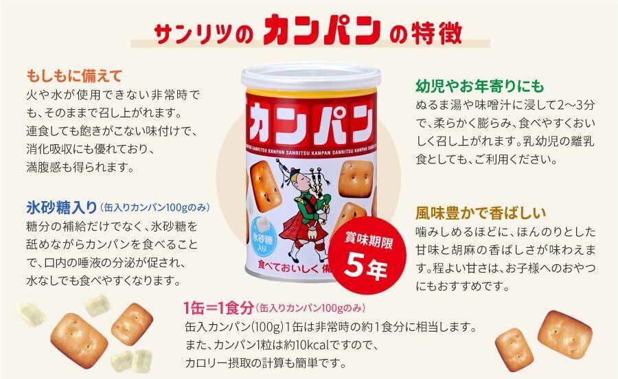 三立 カンパン 100g 缶入り 氷砂糖入り フタ付 卵不使用 非常食 保存食 備蓄食 5年保存【2個セット】