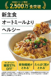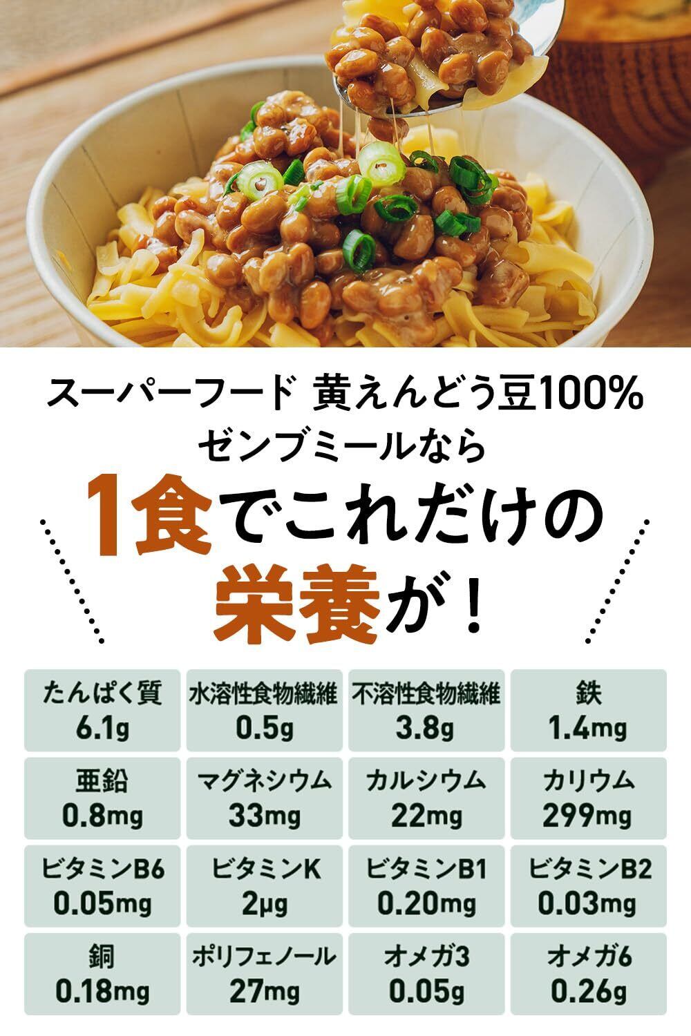 累計販売食数2000万食*1を突破した「 ZENBヌードル ( ゼンブヌードル )」と同じ、スーパーフード黄えんどう豆を使った、豆100%オートミール*2「ゼンブミール」。ゼンブミールは話題のオートミールよりも、たんぱく質1.4倍*3、食物繊維1.4倍*3、ビタミンB1 3.4倍*3、脂質61%OFF*3。いろいろな栄養がとれるのに、1食99kal。オートミールのようにお米代わりやスープに入れて食べるだけなので簡単。(*1:2025年4月30日時点。*2:オーツ麦は使っていません。*3参照:日本食品標準成分表2020年版(八訂)喫食時1人前当たりの値は、ZENBミール乾物30g(戻し後100g)、オートミール乾物30g)