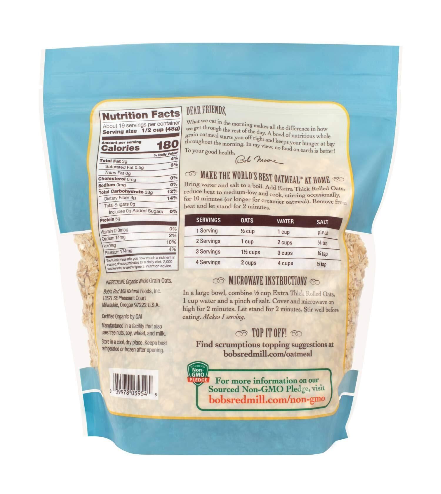 ボブズレッドミル オーガニック 極厚 ロールド オーツ (オートミール) 907 g