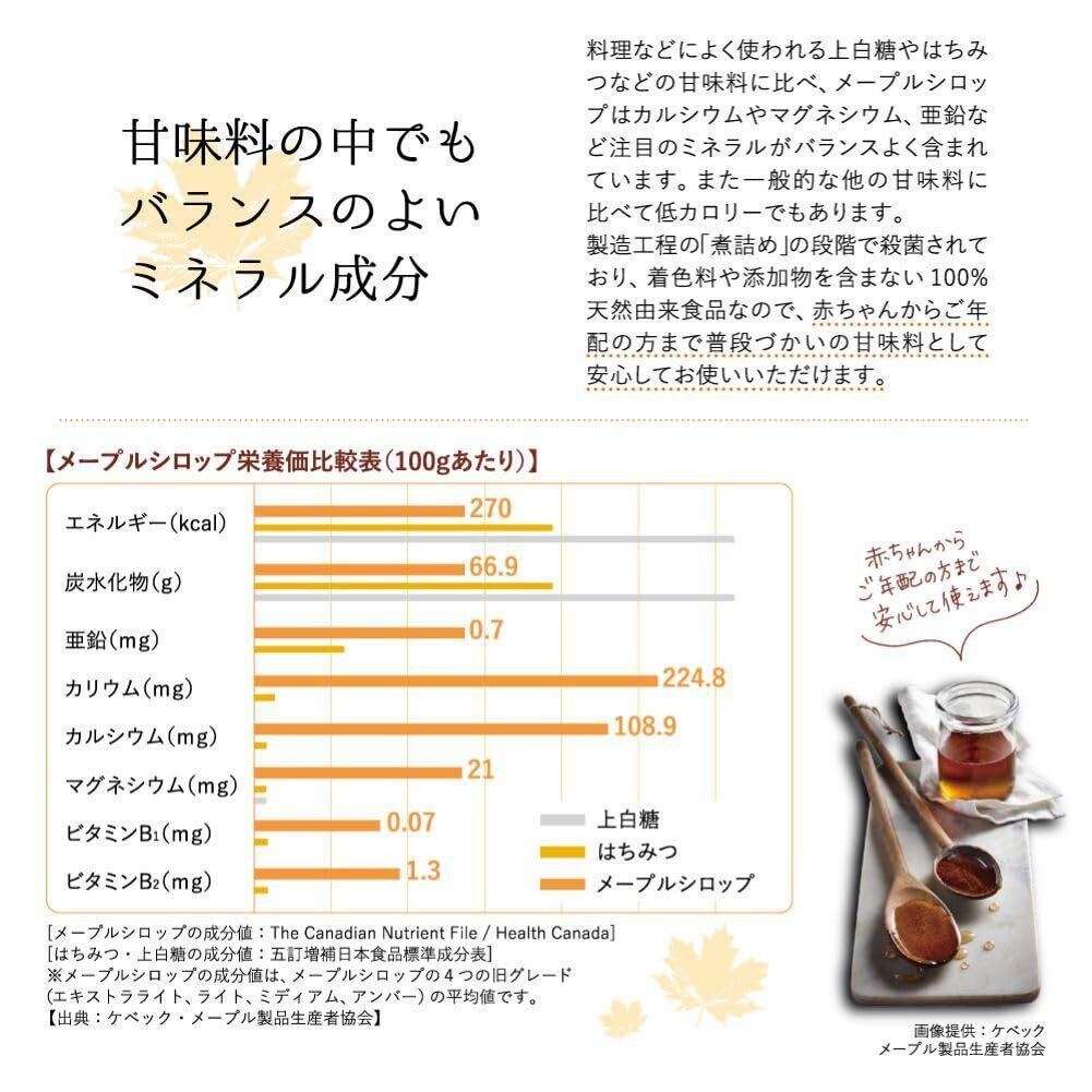 メープルシロップは他の甘味料に比べてカロリーが低く、カルシウムやカリウムなどのミネラルを含んでいます。