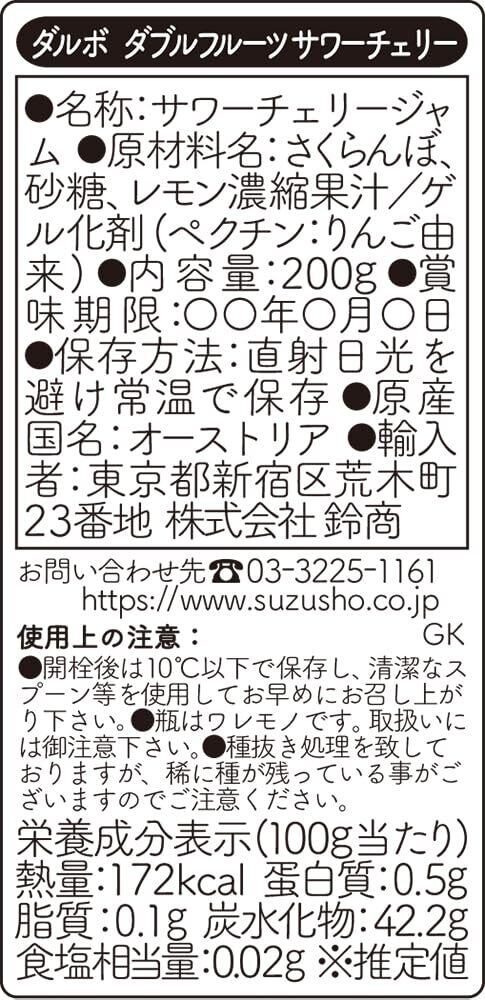 ダルボ ダブルフルーツ サワーチェリージャム 200g