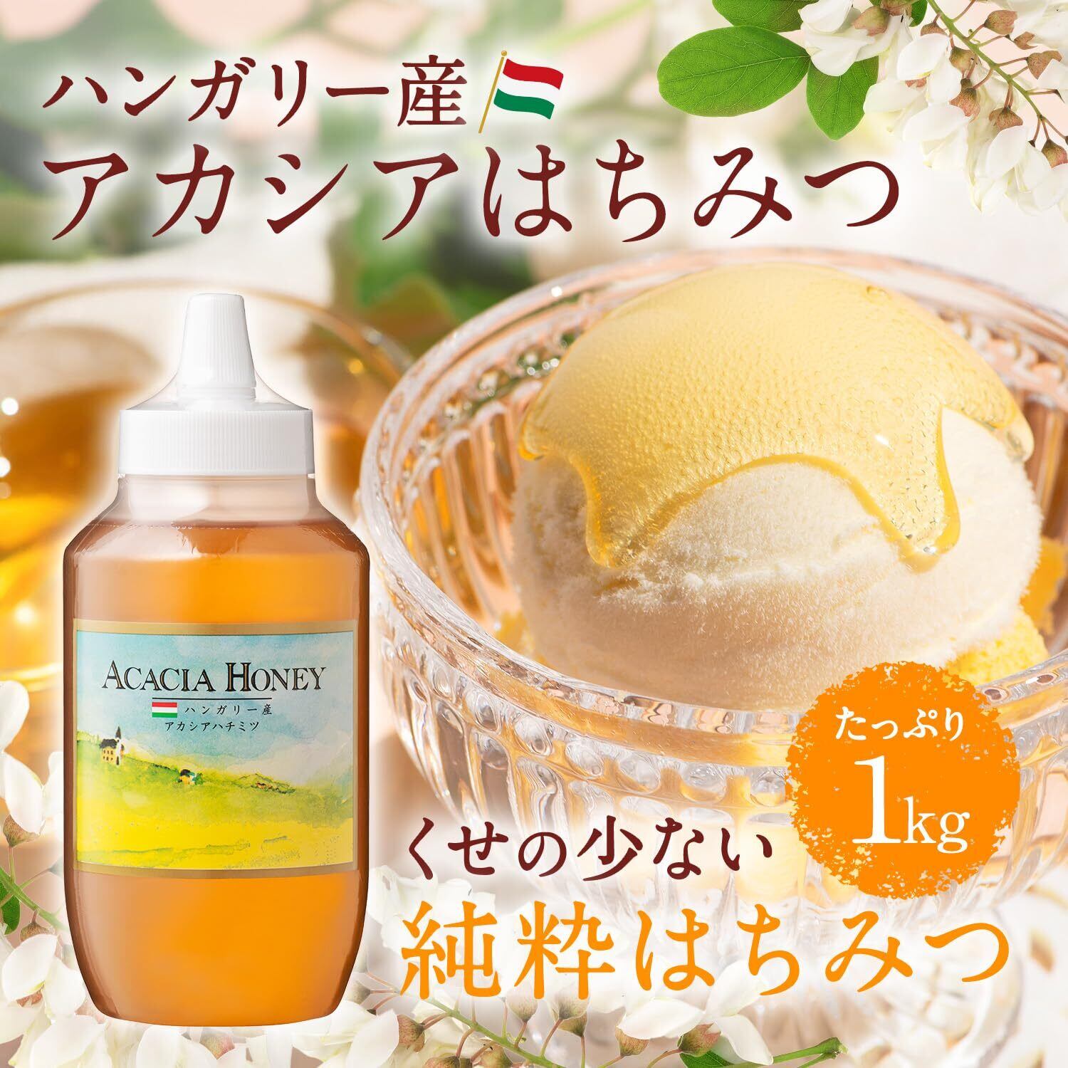 [熊手のはちみつ]ハンガリー産アカシアはちみつ (1kgポリ) 100%純粋 ハチミツ 蜂蜜 honey