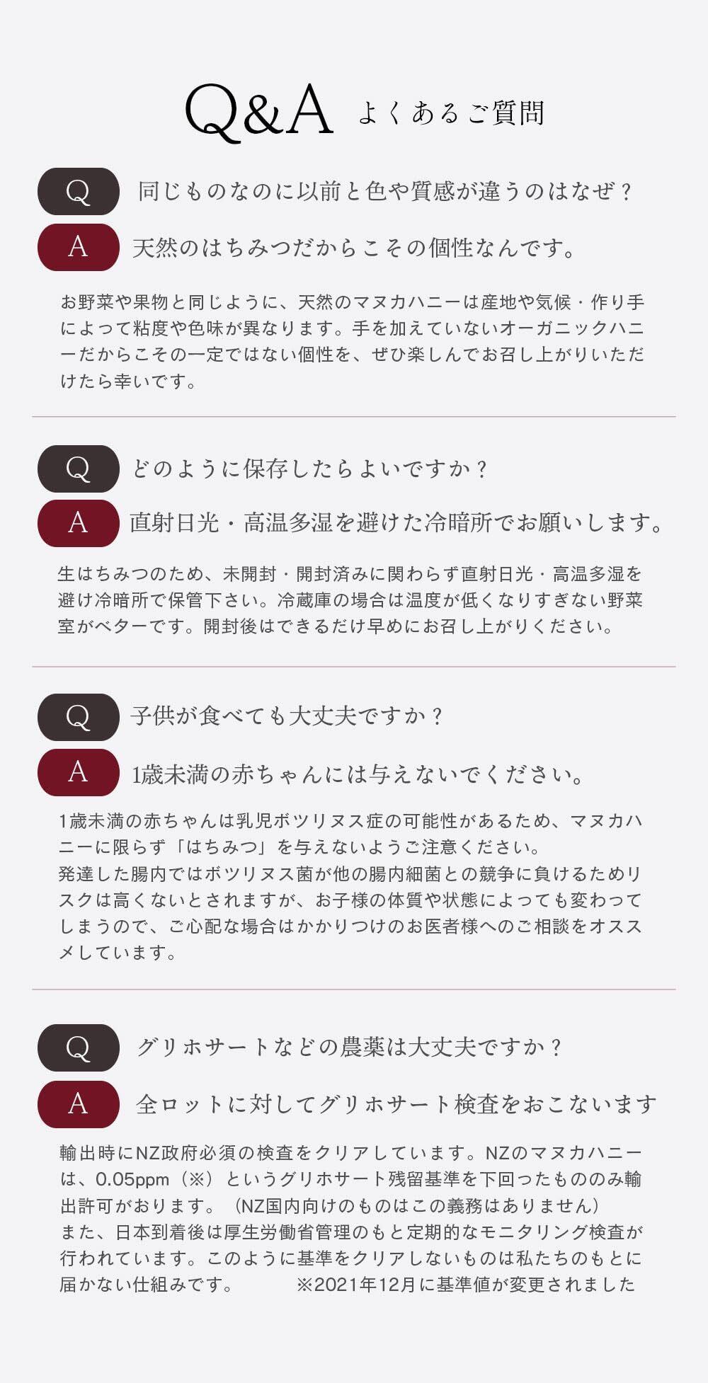 ※マリリニュージーランドのハチミツは徹底した品質管理のため一切卸売りはしていません。マリリ以外からの販売は【転売業者】のため品質に問題がある可能性があります。十分ご注意ください。