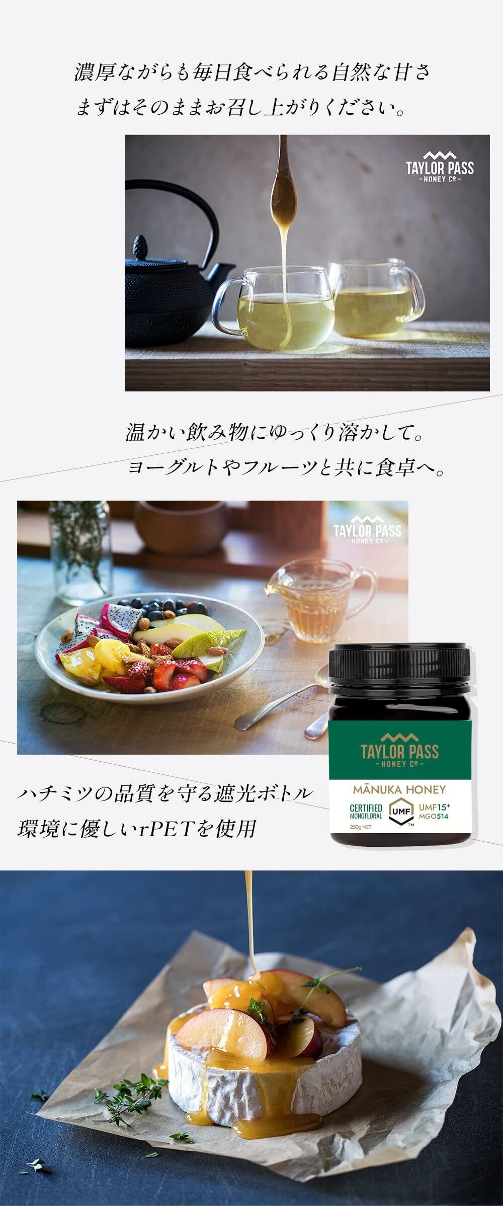 マヌカハニー UMF 15+ 250g MG512~825相当 UMF協会認定 Taylor Pass マリリ ニュージーランド 生 はちみつ 純粋 ハチミツ 蜂蜜 非加熱 無添加 (UMF15+, 250g) 正規品