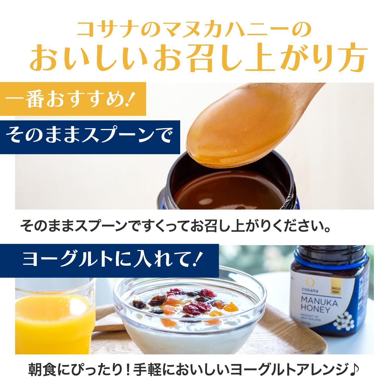 Cosana コサナ マヌカハニー MGO100+ 200g 1本 チューブタイプ 逆さボトル 正規品 ニュージーランド産 非加熱 無添加 はちみつ 蜂蜜 BRCGS AA+認証工場製造