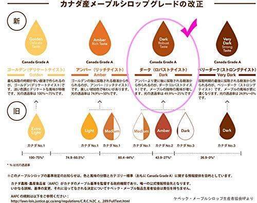 申し訳ございません。ラベルについて、現在のロットB24-284-C のボトルに印字あり (2024年12月28日以降から現在に至りまして)はカナダのメーカーのもとで、アンバーとダークは同一のラベルを使用して、日本輸出用はメーカーが中身に合わせて、上から日本語一括表示のアンバー/ダークのラベルを貼っています。 弊社日本輸入時に、それぞれの色・味を確認し、日本語のラベルにアンバーと記載しているもの・ダークと記載しているものは中身も併せて間違いないと検査しております。日本語のラベルに記載されているグレードが正しいものとなっておりますのでご安心ください。 この様なことが起こらないように現地メーカーに、改善に努めています。カナダのメーカー、ブランド、デザインの変更も含め改善に努めていますので、ご了承いただけますよう、よろしくお願い致します。ご懸念をいだかせてしまい申し訳ございません。