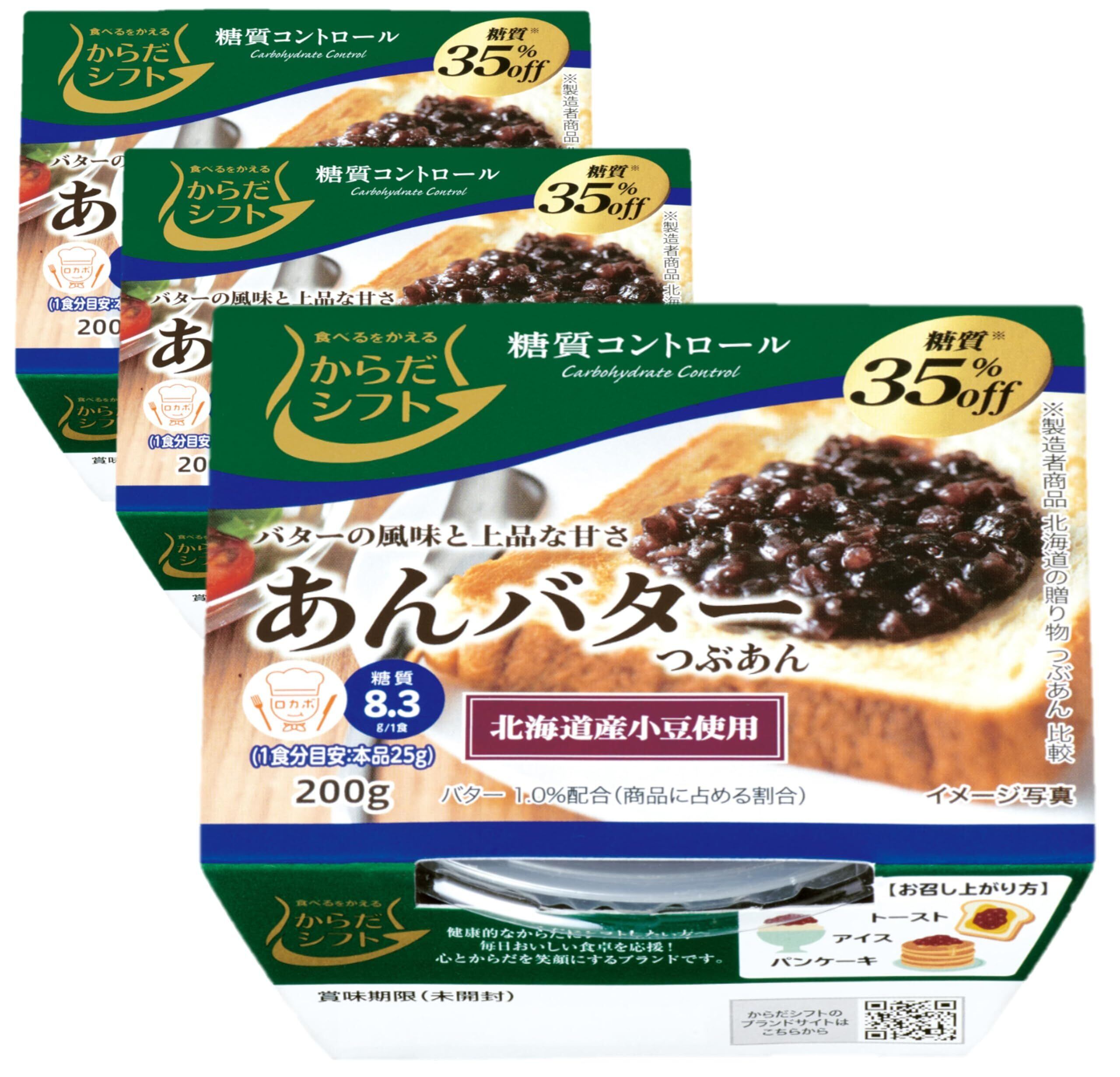 北海道産小豆100%使用したあんこにバターを加えました。低糖質あんこの上品な甘さにバターのコクと風味がクセになるあんバターです。糖質を気にせず、朝食や間食にあんバターを楽しむことが出来ます。一食(25g)で糖質量8.3gです。