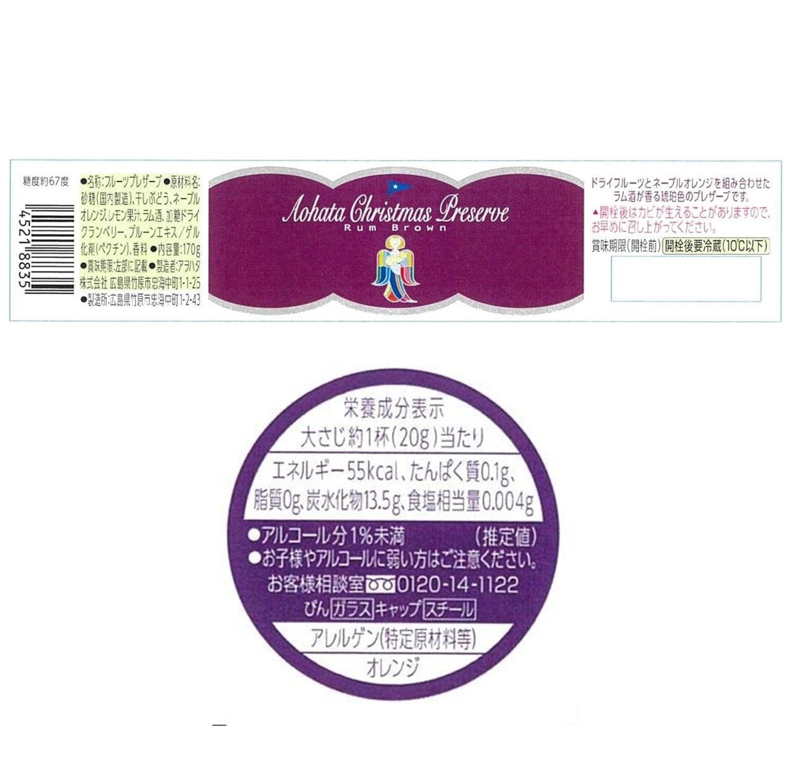アヲハタ 2024年 クリスマス プレザーブ ラム ブラウン 170g ジャム ギフト