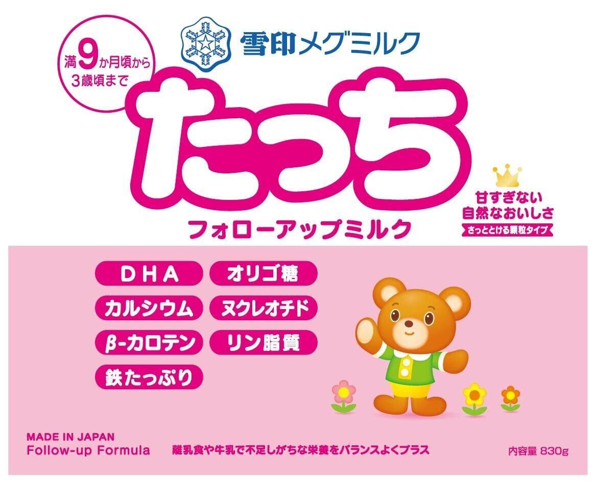 原材料:乳糖(ドイツ製造又はアメリカ製造)、植物油(カノーラ油、パーム核油、パーム油、大豆油)、デキストリン(でんぷん糖化物)、脱脂粉乳、バターミルクパウダー、乳清たんぱく質濃縮物、ホエイパウダー、全粉乳、精製魚油/炭酸Ca、リン酸Ca、クエン酸K、硫酸Mg、塩化K、V.C、ピロリン酸鉄、V.E、シチジル酸Na、パントテン酸Ca、ナイアシン、炭酸K、V.B6、V.A、V.B1、5'-AMP、ウリジル酸Na、イノシン酸Na、グアニル酸Na、V.B2、葉酸、カロテン、V.D、V.B12、(一部に乳成分・大豆を含む)
