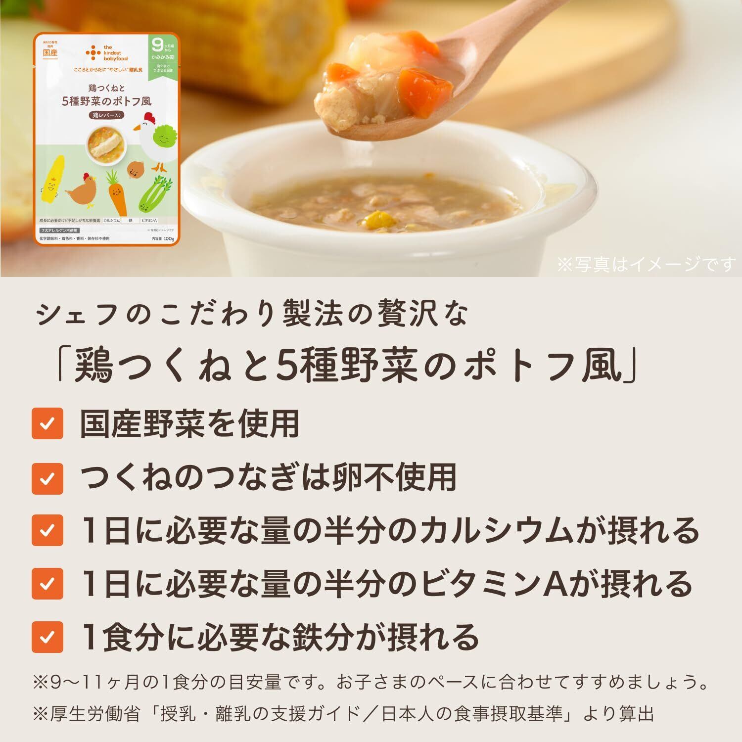 [こころとからだに”やさしい” 離乳食]素材・味・栄養にこだわったやさしい ベビーフード。国産の食材をふんだんに使い、常温でも温めても美味しく手軽に食べられる 離乳食。『9ヶ月 離乳食 6袋セット』は 赤ちゃん の成長をサポートします。