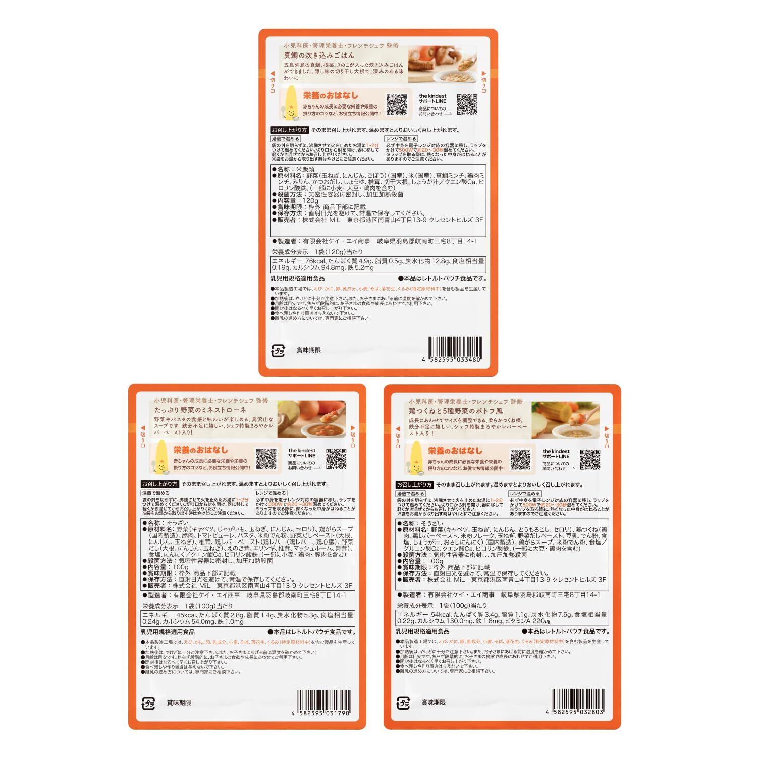 the kindest ( カインデスト )9ヶ月 離乳食セット(3種×2個)6袋セット (たっぷり野菜のミネストローネ/真鯛の炊き込みご飯/鶏つくねと5種野菜のポトフ風)