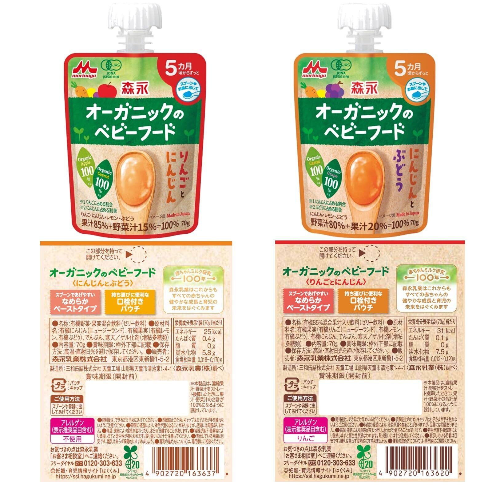 森永乳業ベビー&キッズ オーガニック ベビーフードアソート 離乳食 にんじんとぶどう りんごとにんじん 有機JAS認証 パウチ