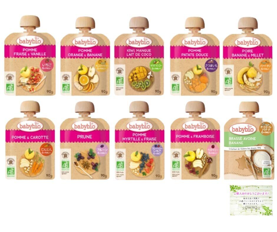 【お楽しみ10種セット】 ベビービオ babybio 離乳食 ベビー スムージー 各1個ずつ (いちご オレンジ・バナナ キウイ・マンゴー さつまいも バナナ・きび にんじん プルーン ブルーベリー・いちご ラズベリー オートミール・バナナ) ベビーフード 野菜ジュレ 6ヶ月頃からの離乳食 ベビーフード 赤ちゃん おやつ 無添加 オーガニック お菓子 乳幼児規格適用食品 誤飲防止キャップ採用 Happy Mint 特製ポケットティッシュ付き