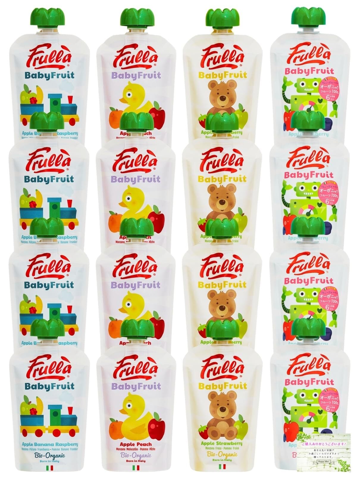 【お楽しみ4種×各4個セット】 ベビースムージー ベビーフルーツ 100g 4種セット 各4個ずつ 計16個 離乳食 ベビーフード ナチュラヌオヴァ フルーツ100% ジュレ 【有機JAS】 【無添加】 【オーガニック】 砂糖・甘味料・香料・保存料・グルテン不使用 おやつに 持ち運びに便利なパウチ 誤飲防止キャップ採用 乳児用規格適用食品認定 Happy Mint 特製ポケットティッシュ付き