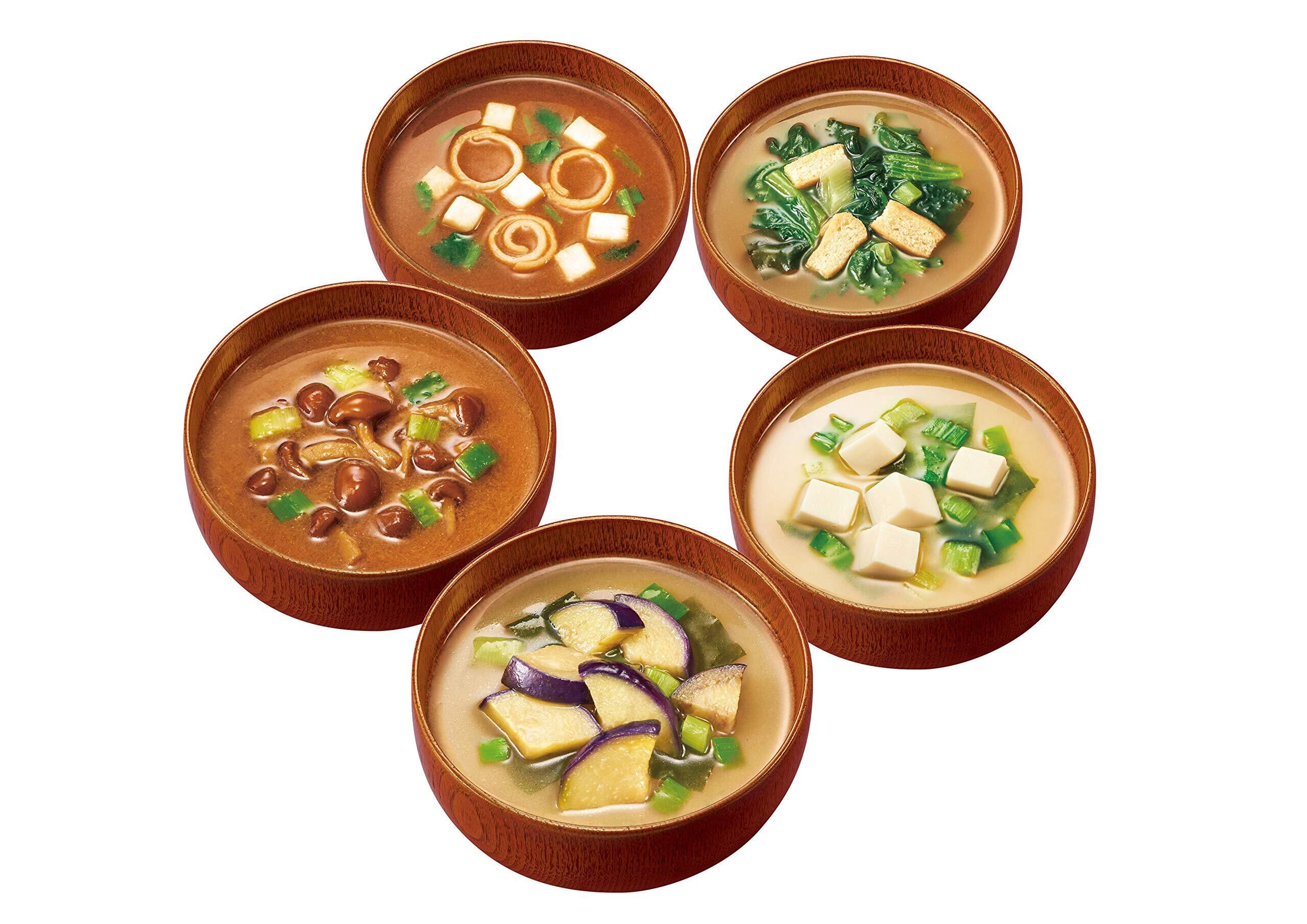 人気の5種類の味(なす・とうふ・赤だしなめこ・ほうれん草・赤だし三つ葉)を2パックずつセットにした計10食のセットになっております。