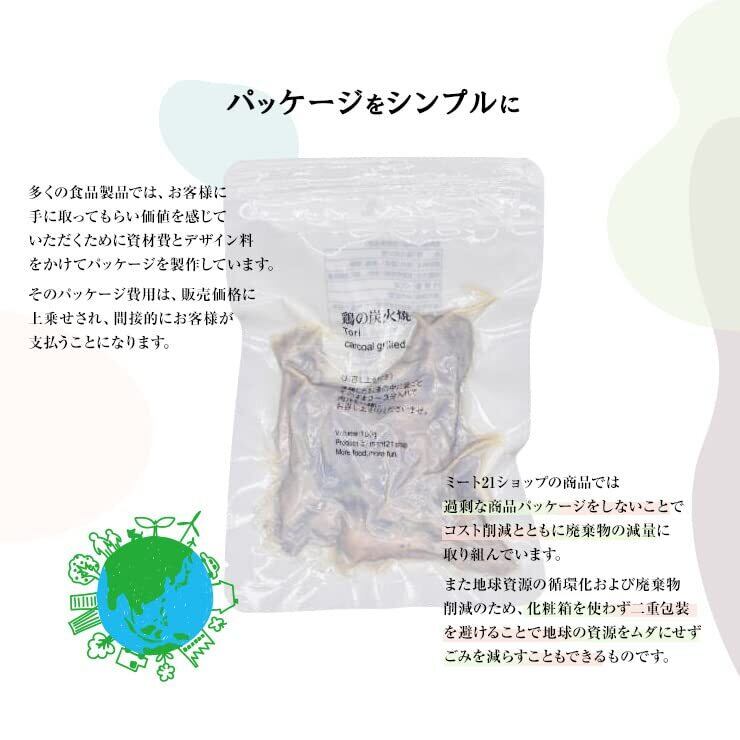 【調味料(アミノ酸)、香料、保存料無添加(塩味、うすしお味)】鶏肉本来の味を大切に、味付けはシンプルに行います。