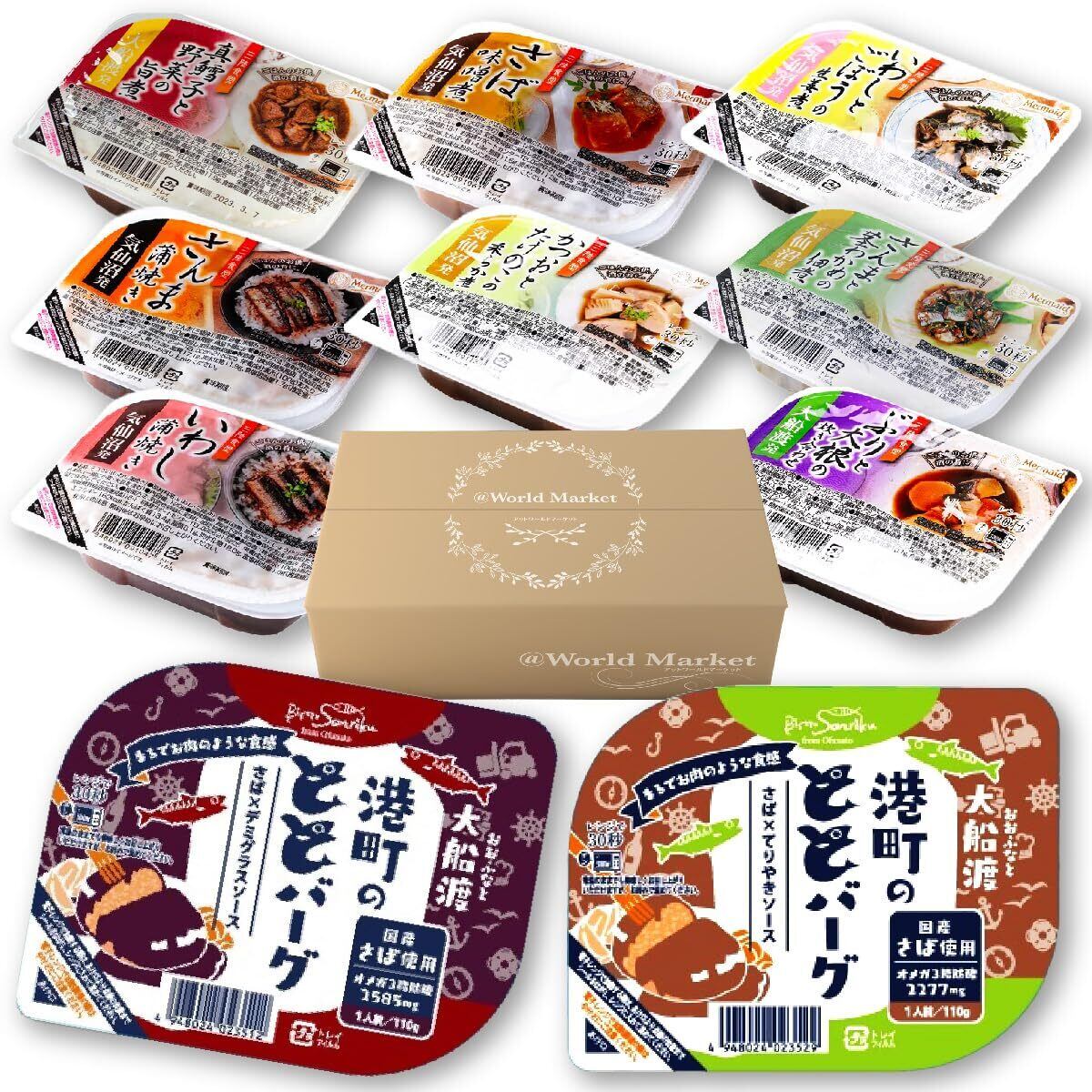 三陸食堂 レトルト食品 レトルト 煮魚 10種 詰め合わせ セット 魚 おかず 惣菜 常温 保存 人気 さば さんま いわし かつお たら ぶり ハンバーグ @World Market オリジナルBOX付き お中元