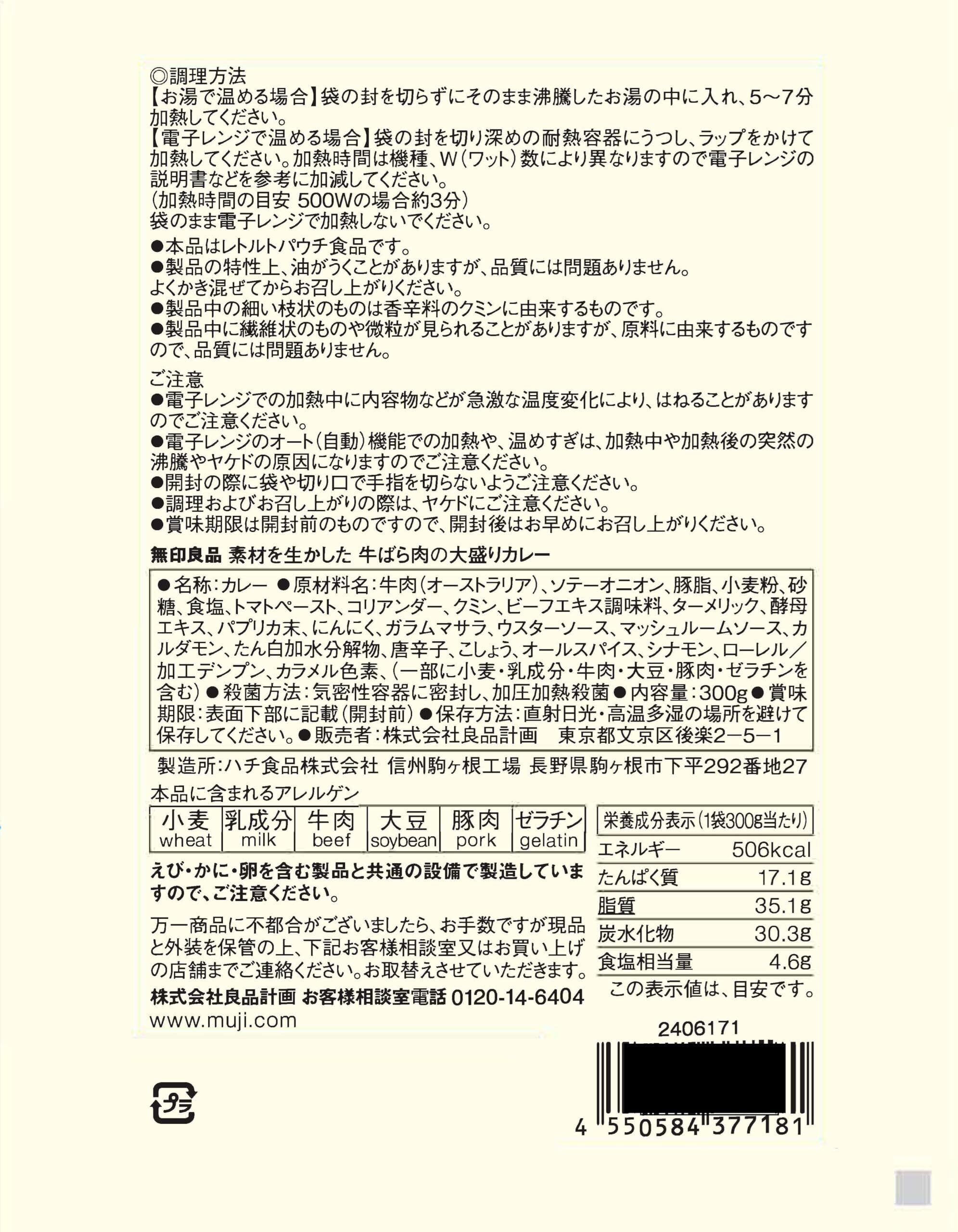 無印良品 素材を生かした 牛ばら肉の大盛りカレー 1人前 TCA31A4S