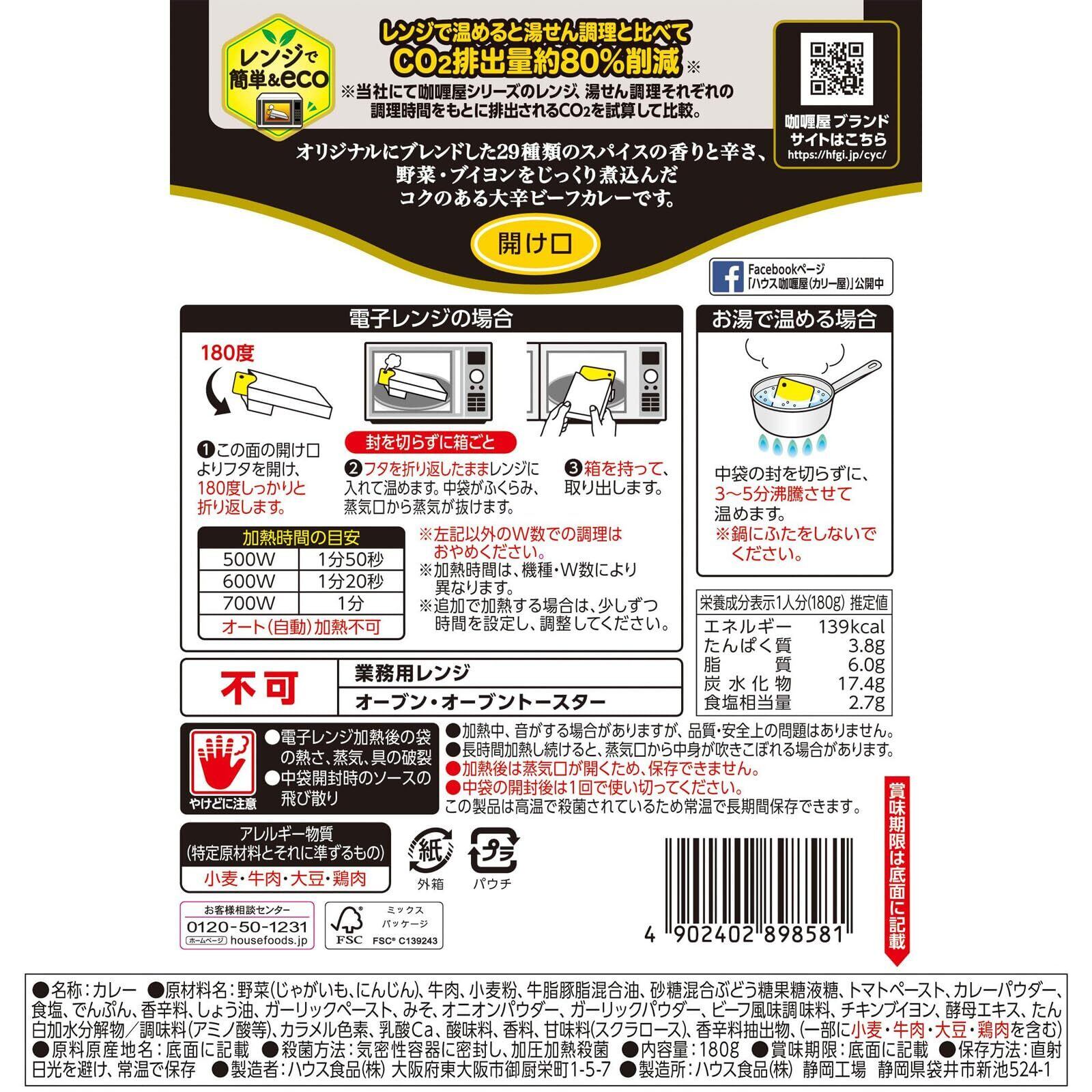 カリー屋 ハウス カレー 大辛 180g×10個 【レンジ調理対応】【レトルト食品】【非常食】