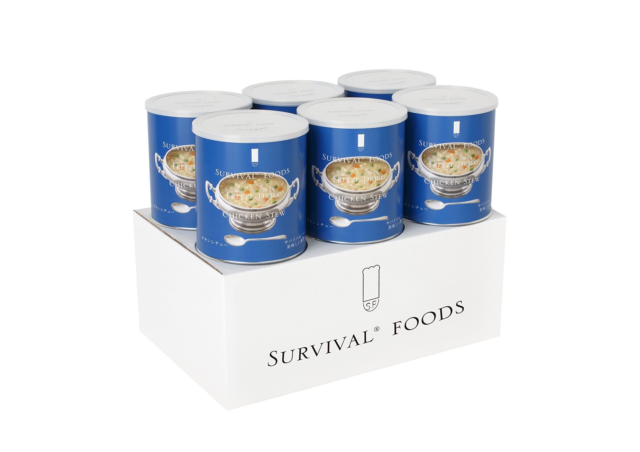 2018年6月にリニューアル発売した国内製造で25年保存の非常食サバイバルフーズのチキンシチュー。国産じゃがいも、彩り野菜、しっとりと柔らかな鶏肉、ホワイトルゥが調和した、口の中でとろける甘くやさしいクリームシチュー。ほっとできるご家庭の味わいのシチューです。