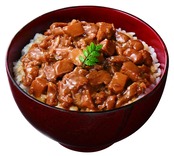 鶏肉をたっぷり使用し、醤油の甘濃い味で再現しました。1箱1人前。ごはんにかけてお召し上がりください。