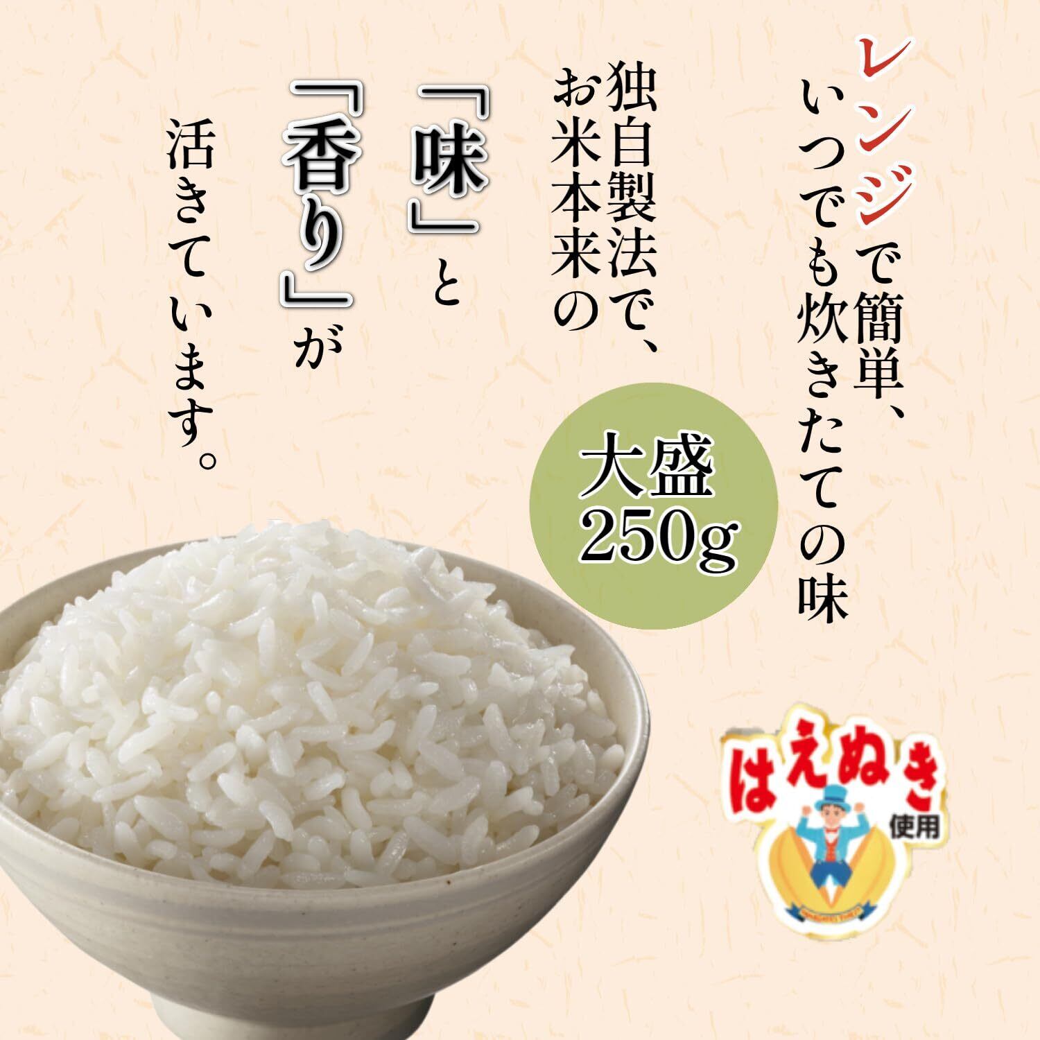 はえぬきを使用した、丼約一杯分250gの大盛ごはん。独自製法で、お米本来の味と香りが活きています。