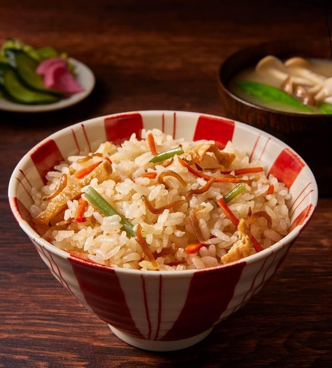 ●油揚げ、にんじん、しらす、芋茎、ちりめん入り。