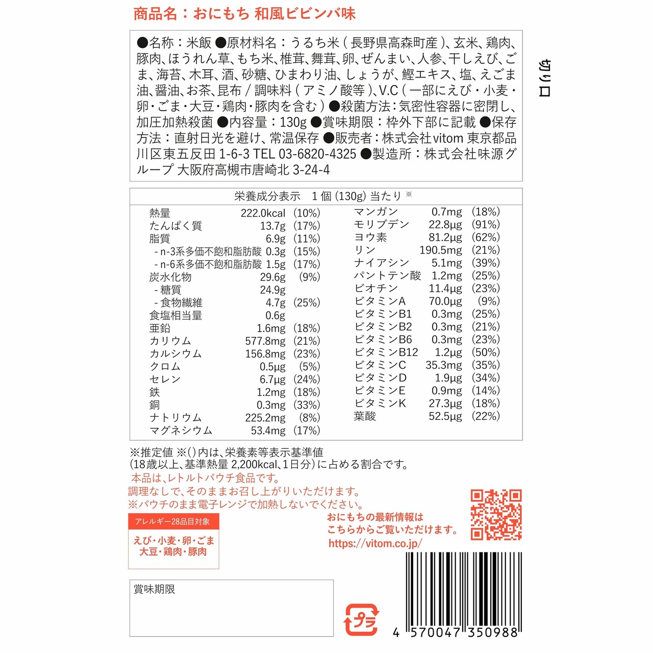 完全栄養食おにもち 9個セット 3種類×3個 vitom お米ベースの完全栄養食 非常食 備蓄 保存食 時短食 昼食 タイパ 完全栄養ごはん