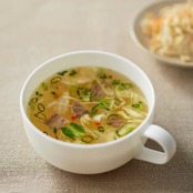 じっくり煮込んだ牛テールのコクと、しゃっきりとした葱の食感が生きたスープです。程よく塩味をきかせ、味わい深く仕上げました。