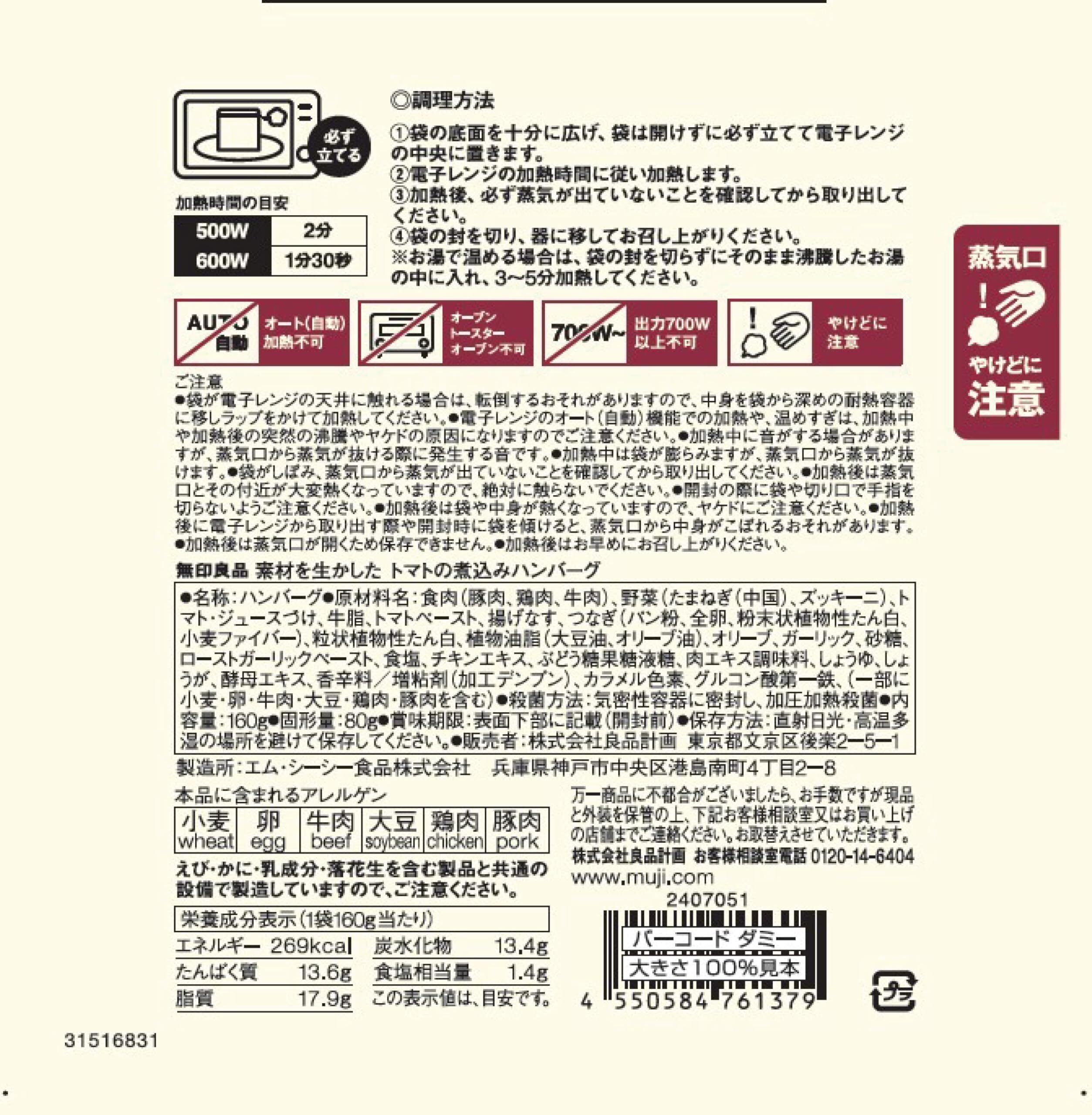 無印良品 素材を生かした トマトの煮込みハンバーグ 1人前 TCF09A4A