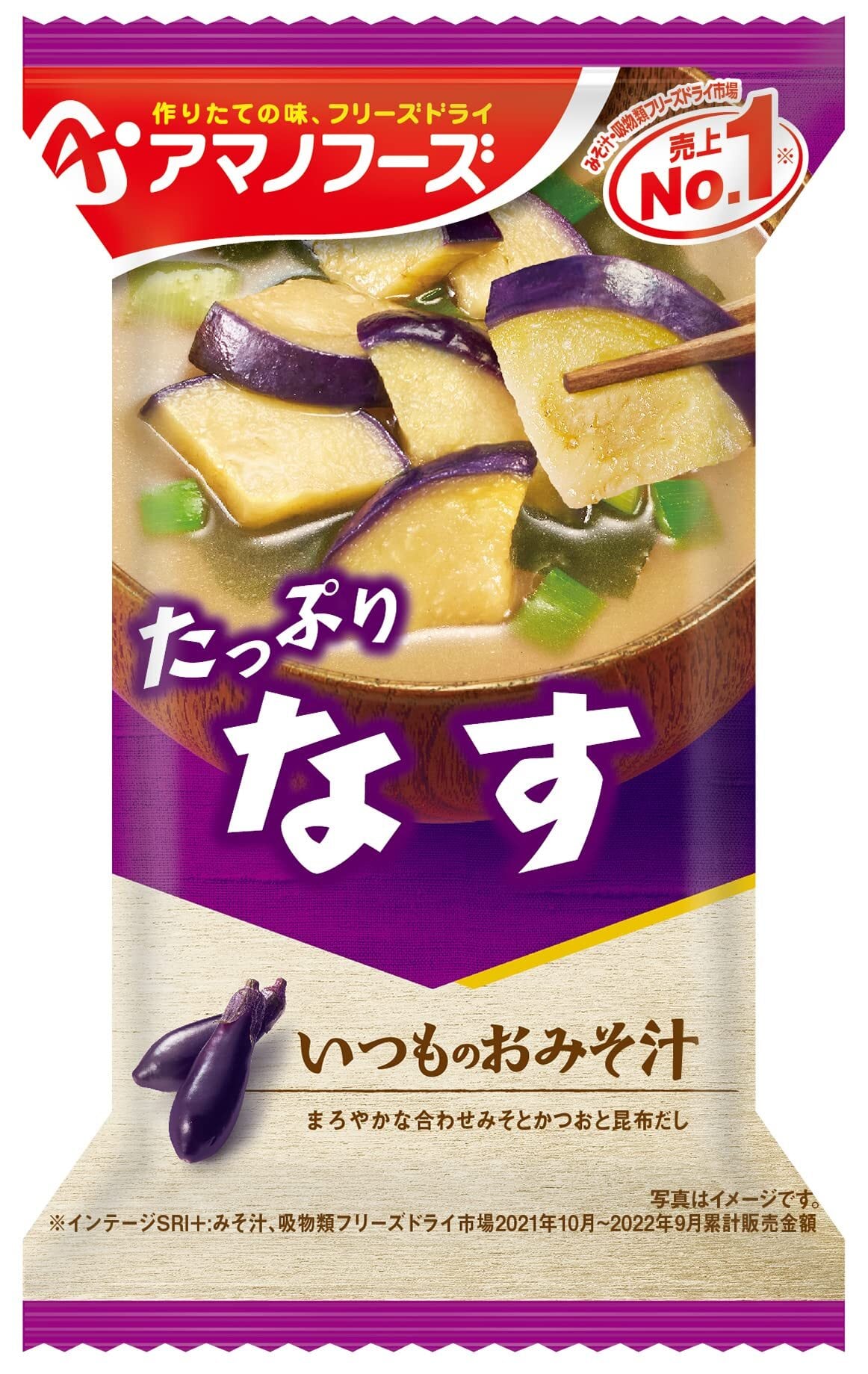 まろやかな合わせみそとかつおと昆布の合わせだしで、飲みやすい定番の味わいに仕上げました。とろっとしたなすの食感が特長のおみそ汁です。