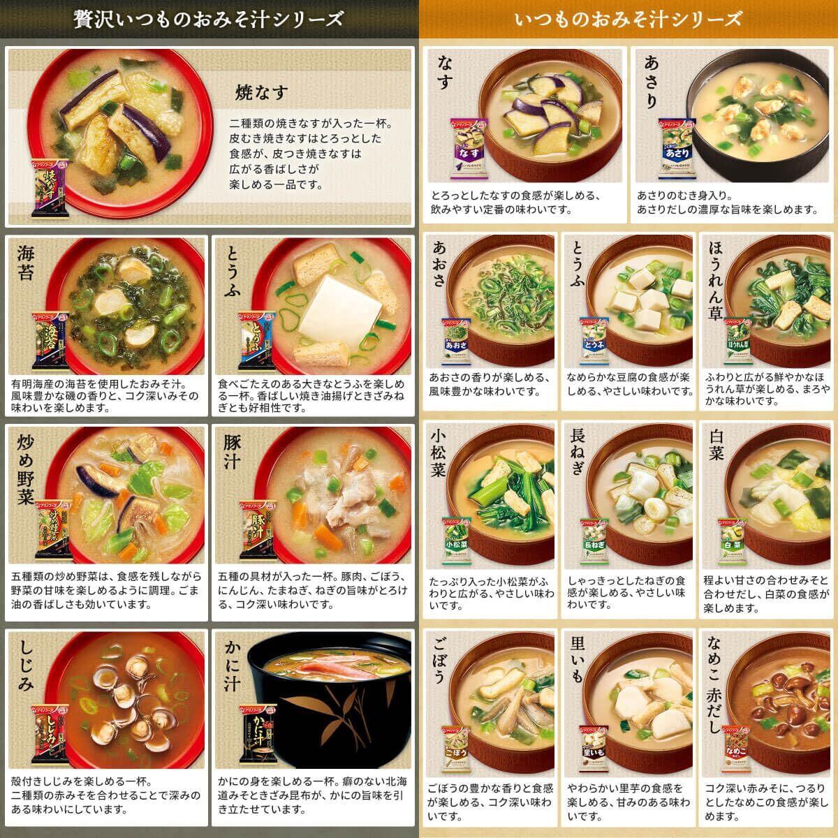 アマノフーズ いつものおみそ汁 / いつものおみそ汁 贅沢 / 減塩 いつものおみそ汁 / 旨だし おみそ汁 の4シリーズ31種類が入った インスタント 即席 フリーズドライ 味噌汁 詰合せ セット